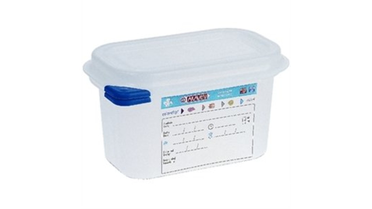 Airtight gastronorm sized container with lid. Each container is supplied with a set of colour coding clips (red, yellow, green and blue) and permanent wipe clean label for easy identification of contents and simplified food rotation. Temperature rang...