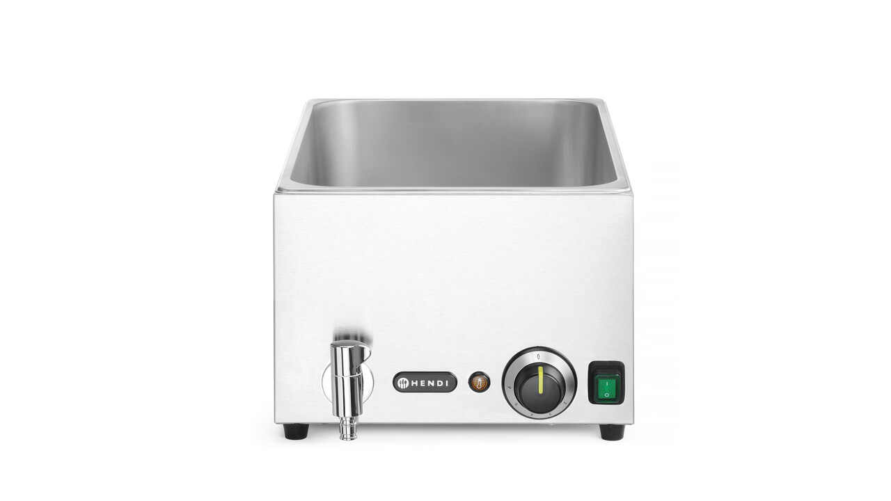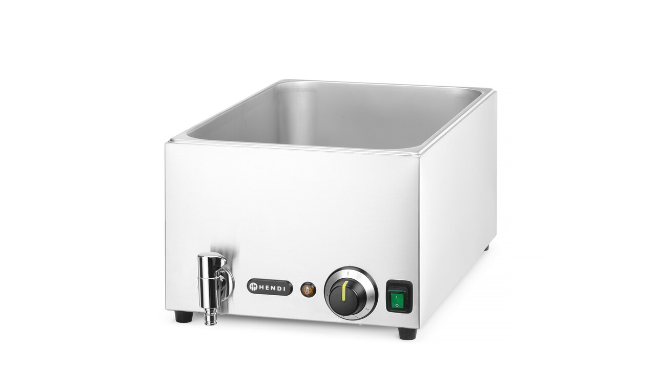 The Bain-marie with drain tap HENDI Ranger gradually heats content or keeps it at a controlled, constant temperature without burning or boiling. The rounded corners of this bain-marie’s water container and its drain tap make cleaning it much easier. It's an ideal, reliable addition to busy kitchens or self-service buffets.