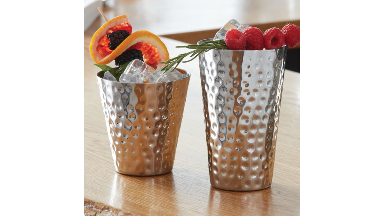Each tumbler is made from stainless steel to withstand years of use in your establishment as well. Additionally, metal beverage ware pieces are ideal for establishments where glass breakage is a concern and they can lower replacement costs since they don't chip or break as easily as glass. Regardless of whether you're using this at your bar or restaurant, its good looks and hammered finish are sure to add to your beverage service.