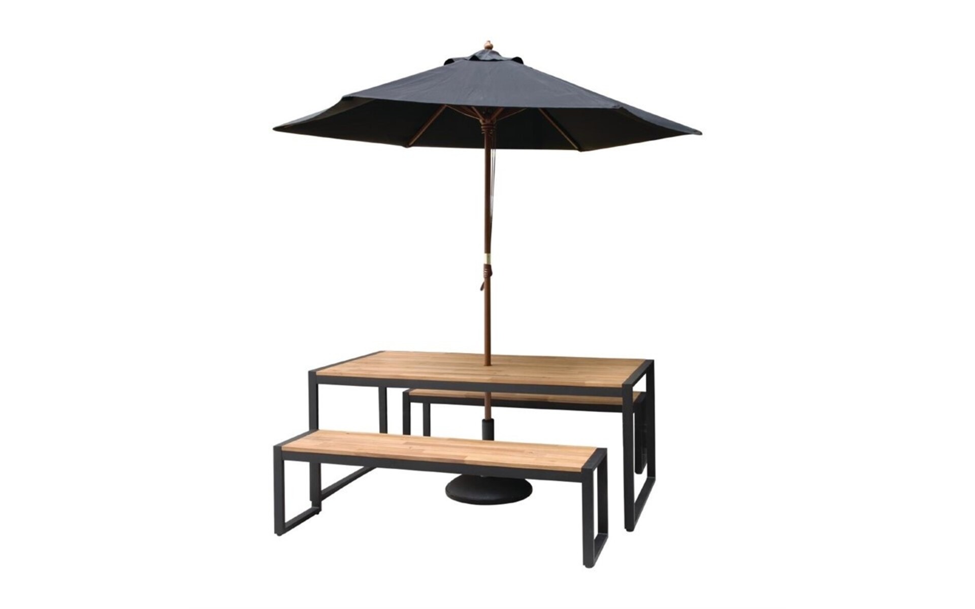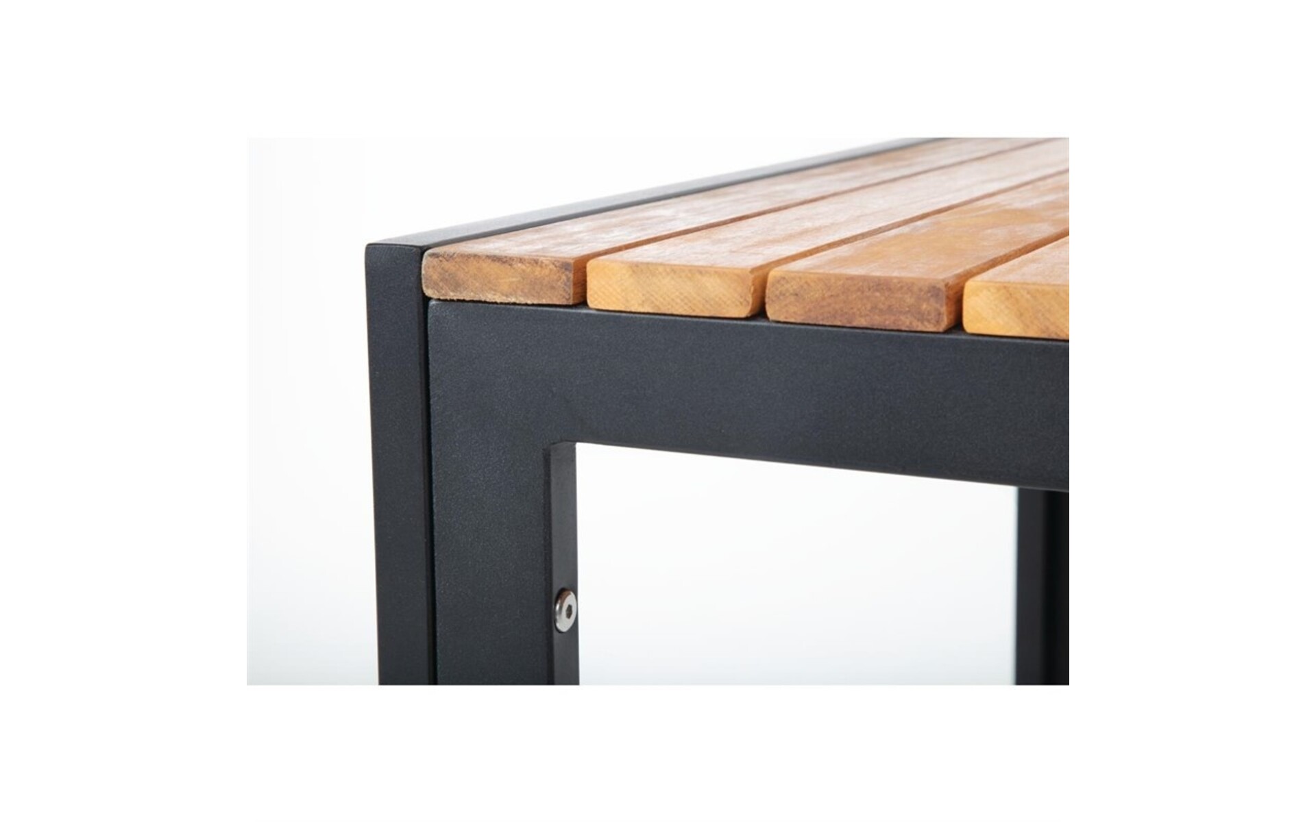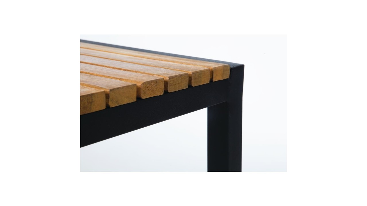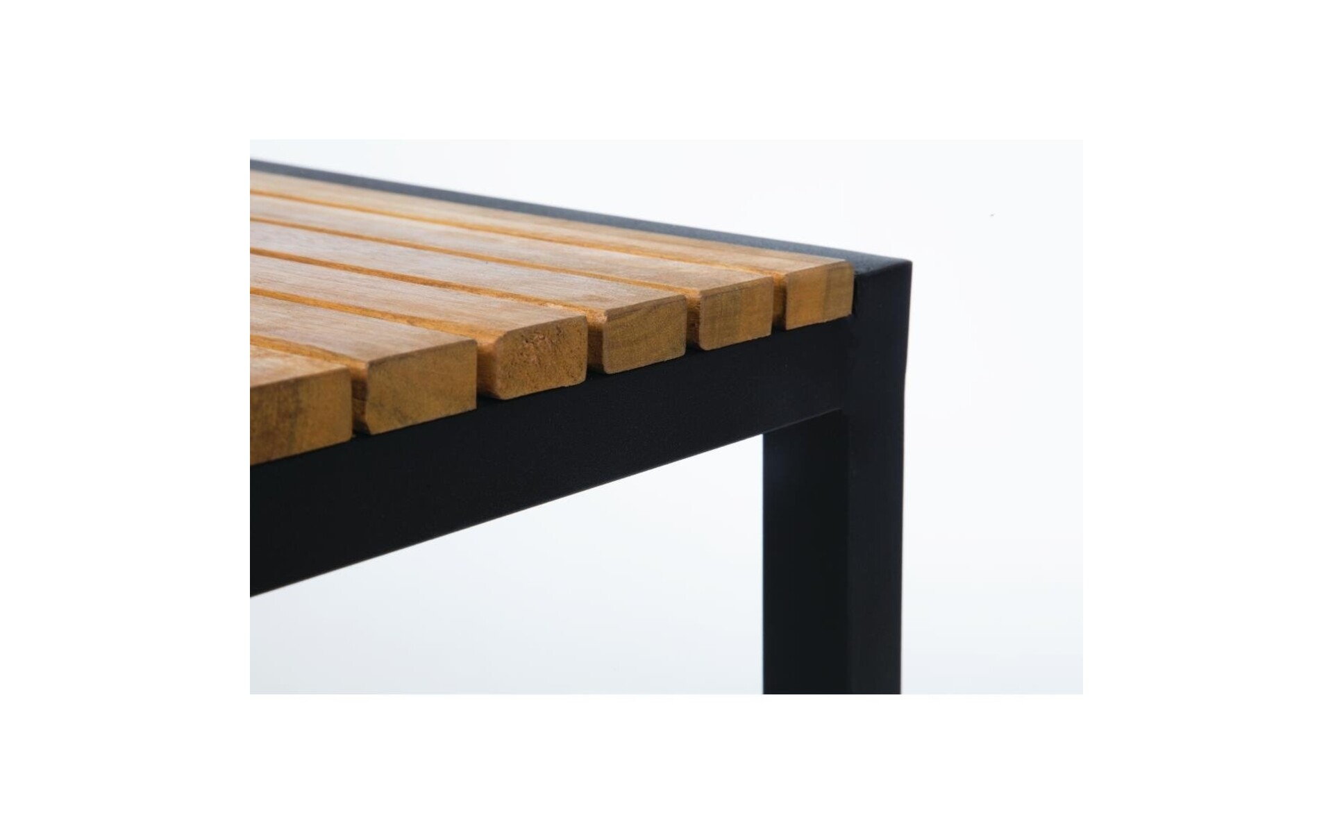 Material Acacia Wood & Powder-Coated Steel. Colour seat : Teak. Pre-oiled wooden top allows for use in wet and dry weather without causing damage. Industrial style will give your spaces a fresh look.