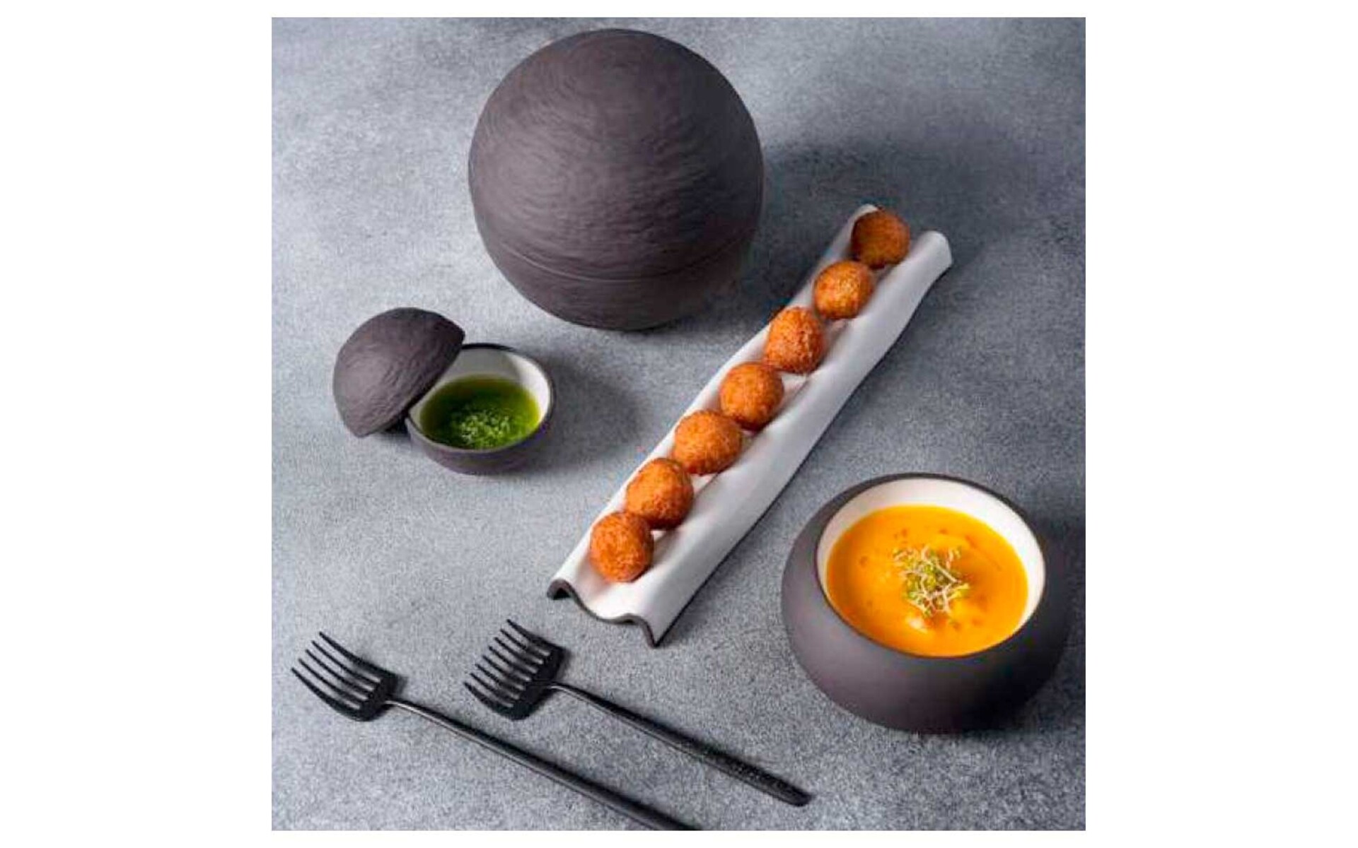 A piece of fine dining tableware designed for creative presentations and high-impact plating. Its spherical shape adds volume, surprise, and a sculptural aesthetic ideal for fine dining.