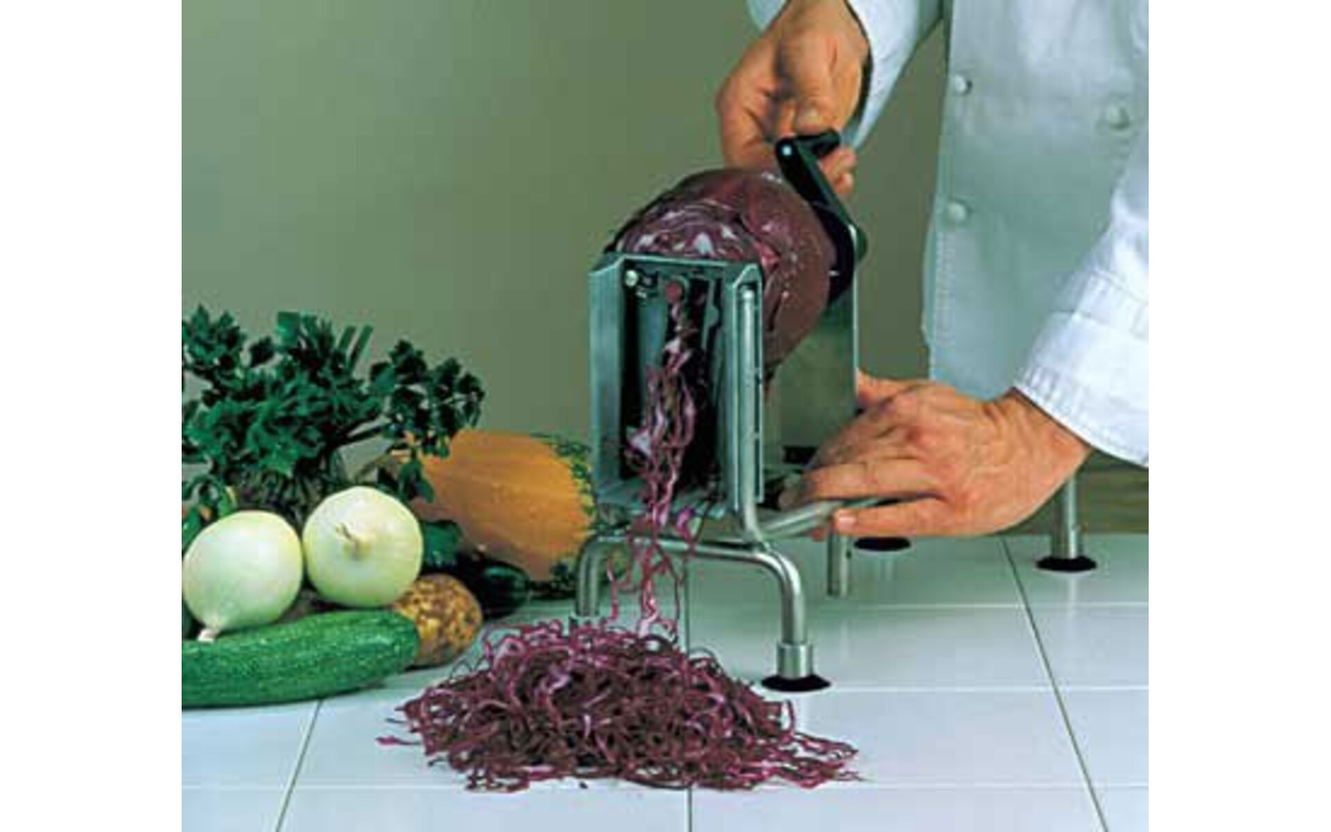 - Enables cutting strings of vegetables, to weave decorative mats, make coleslaw or other vegetable salads.