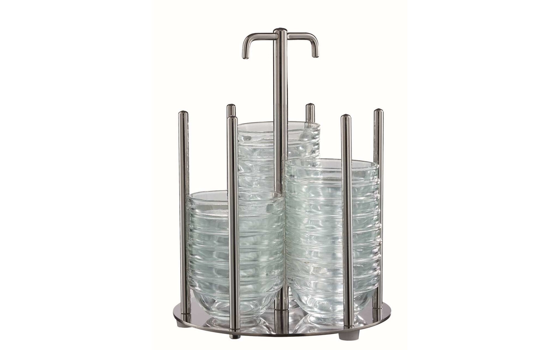 Holder for a maximum of 48 pieces of stackable glass bowls. The quoted price includes 48 bowls.