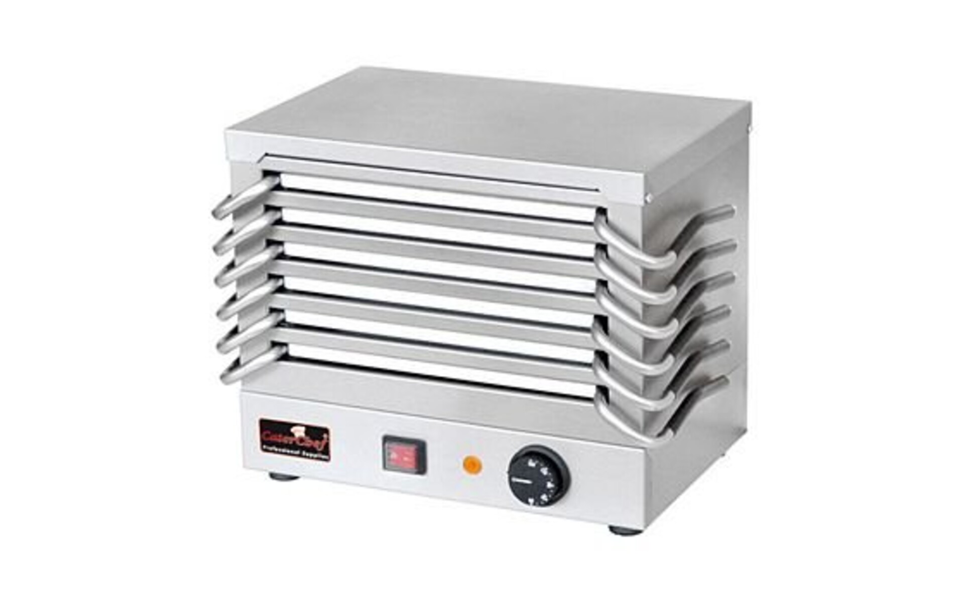 Stainless steel, temperature variably controlled by thermostat, light-weight hot-plates of aluminum with high heat accumulating power and short heating-up span of time, main switch lighted
