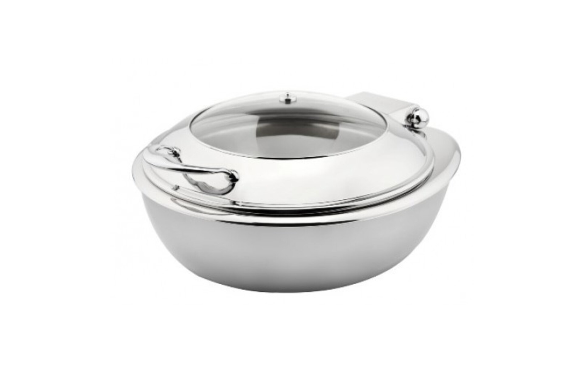 Chafing dish round 680 cl electrical ,made of stainless steel of high quality. Roll top lid forseen with a tempered glass window. Price includes one white porcelain insert