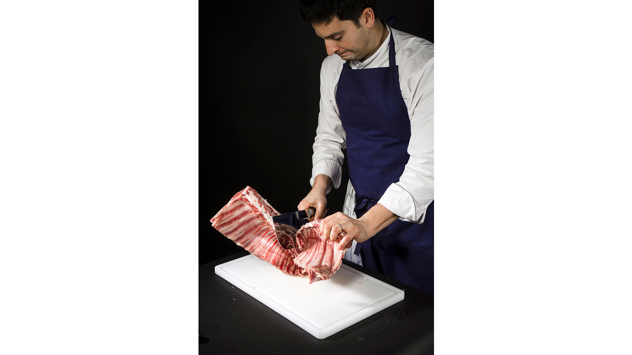 The butcher's chopper, with its blade 24-28 cm and 2-2.5 mm thick, is used for cutting small bones and separating joints. It allows for example to separate two chops by cutting the ends of cartilages.