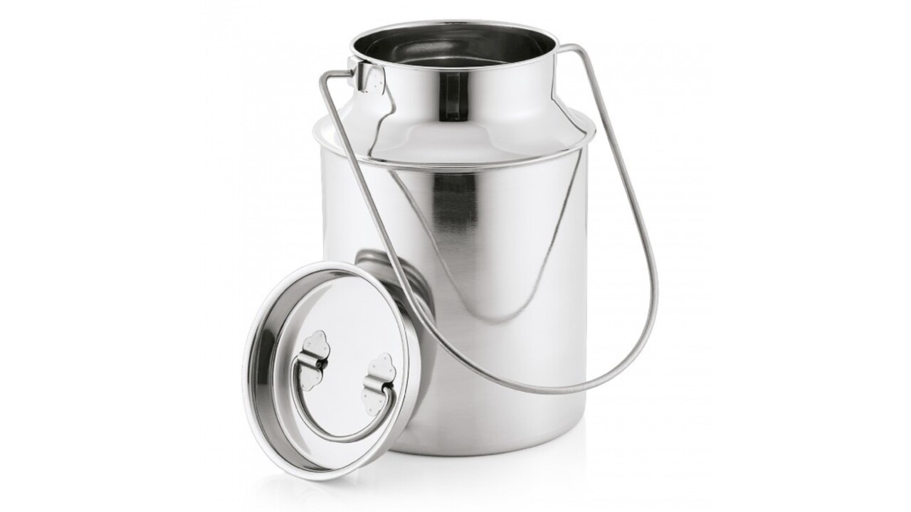 This jar is made of stainless steel and has a single wall, forseen with a carrying handle and press-in lid. Dimensions : Ø 18 cm Height 28 cm.