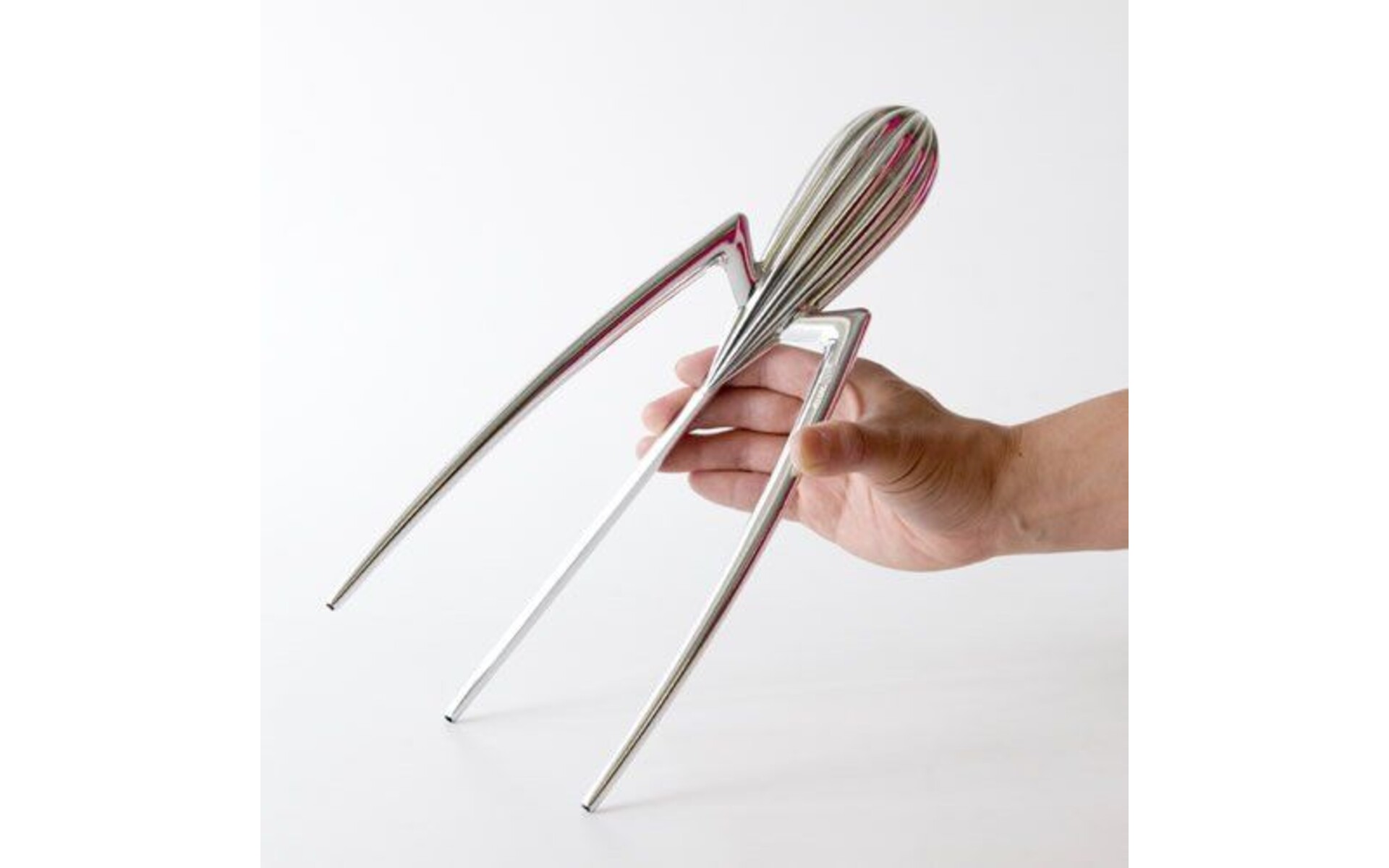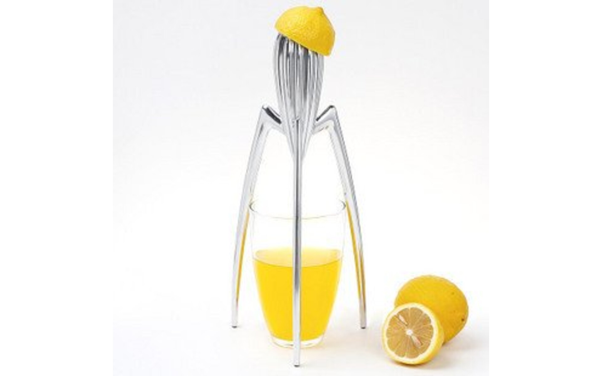Famous fruit press, designed by Philippe Starck. This squid-shaped citrus press from stainless aluminum adorns many design museums. The press is 29 cm high and is forseen by feets made of polyamide.
