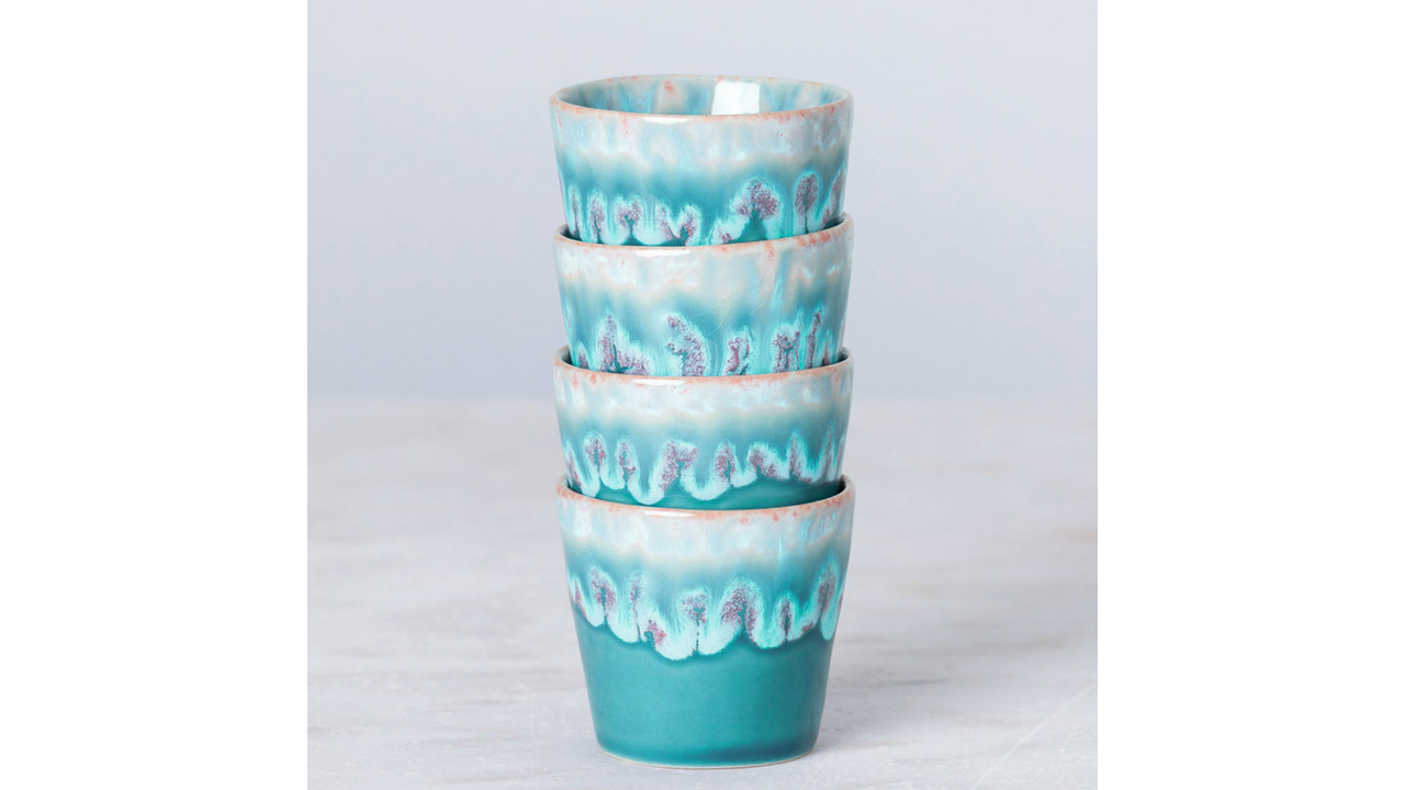 These little clay vessels hold the ideal amount for espresso, matcha, sake, or a shot of tequila. You can even use the cups as decorative items or as miniatures on a buffet table. Finished with a reactive glaze each cup is unique.