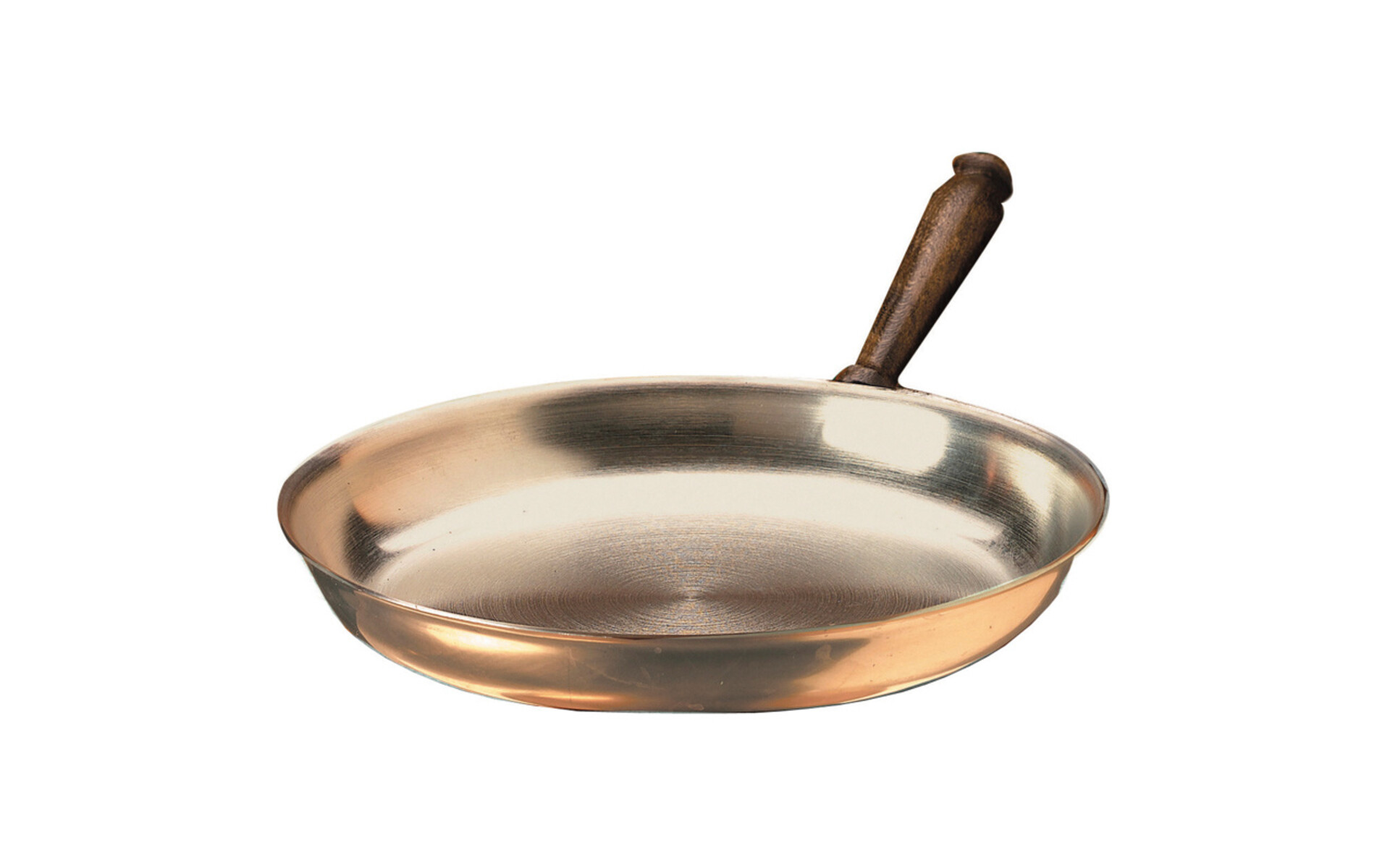Inside stainless steel outside copperplated. With wooden handle.
