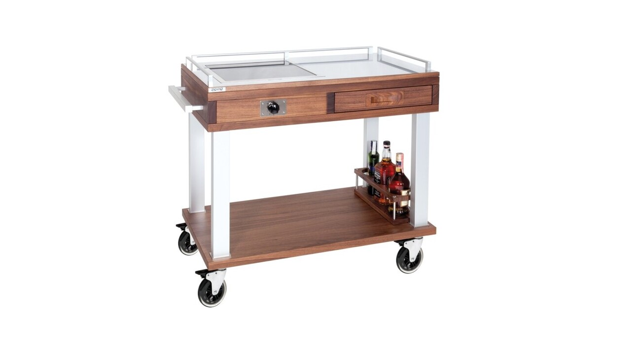 - Timeless service trolley made of solid walnut wood