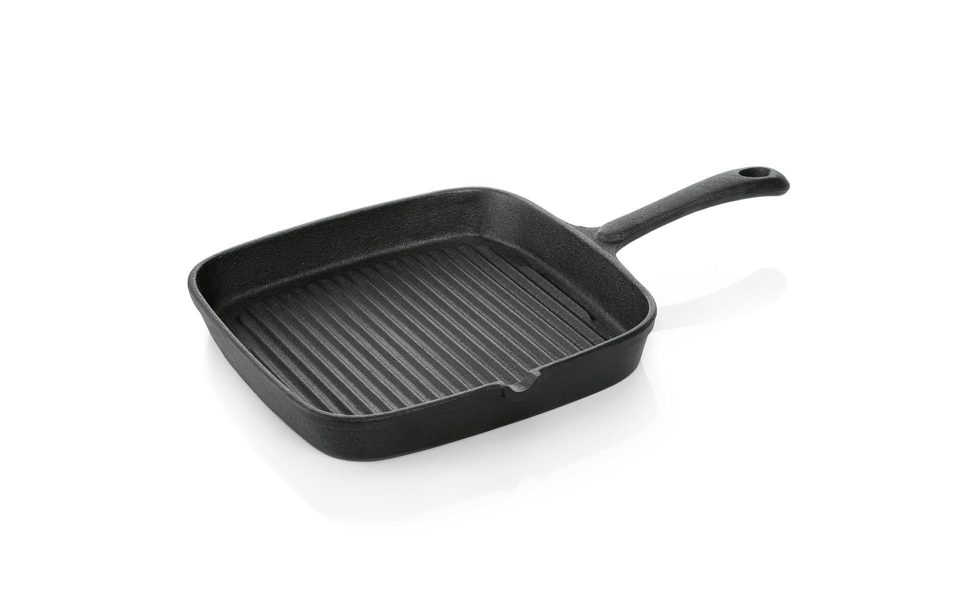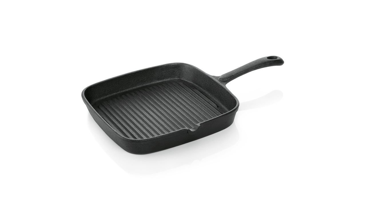 Square shape. Total height: 3.5 cm. Handle with hanging loop. Suitable for induction. Weight: 2.2 kg .