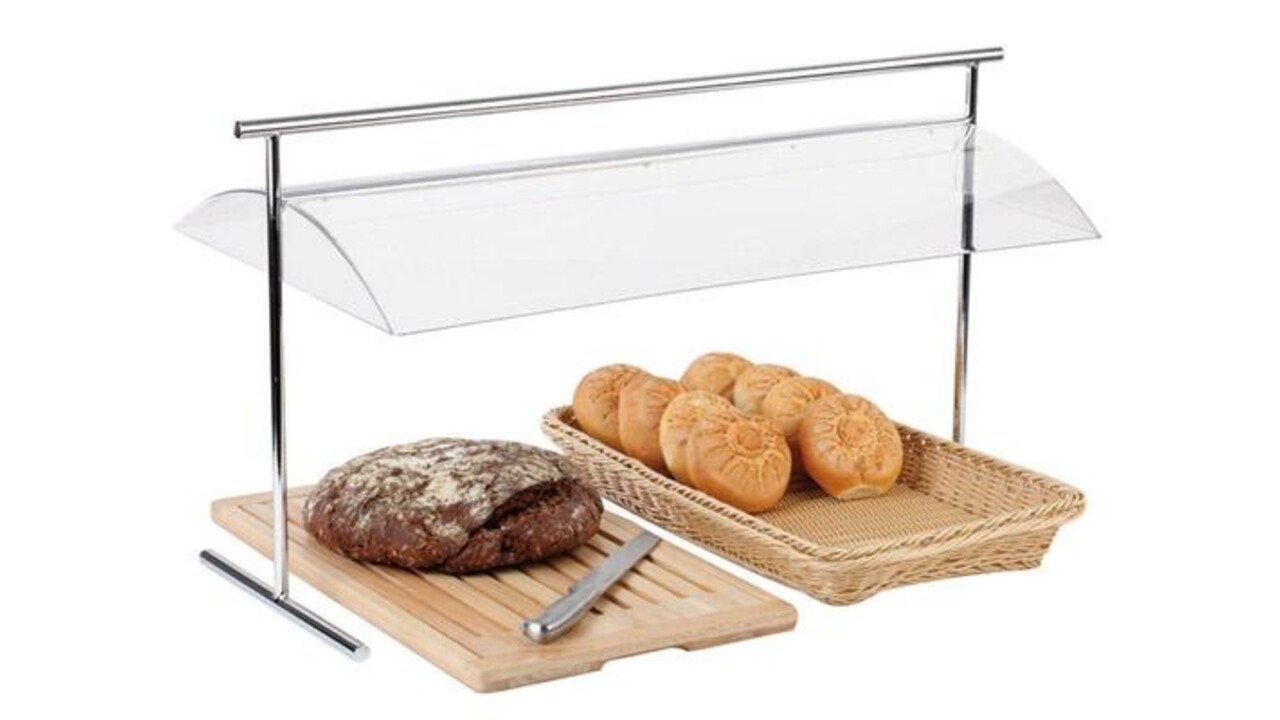 This 3 pieces set includes the acrylic frame and 1 cutting board GN 1/1 and 1 breadbasket GN 1/1 height 6,5 cm. Breadknife not included.