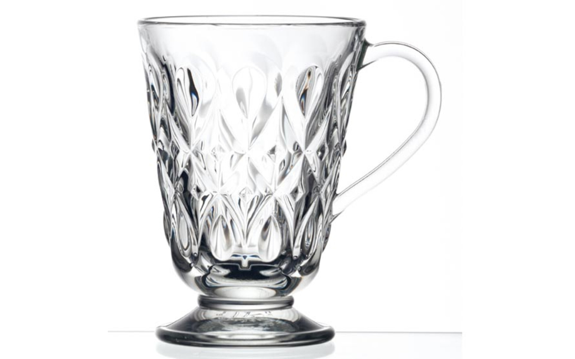 Tea or coffee mug in retro style. Dishwasher proof. Heat resistant glass.Your coffee mug never looked so chic. With sparkling teardrop designs and an elegant handle, these mugs make a spectacular presentation for guests, while their sturdy build offers everyday use you can revel in each morning.