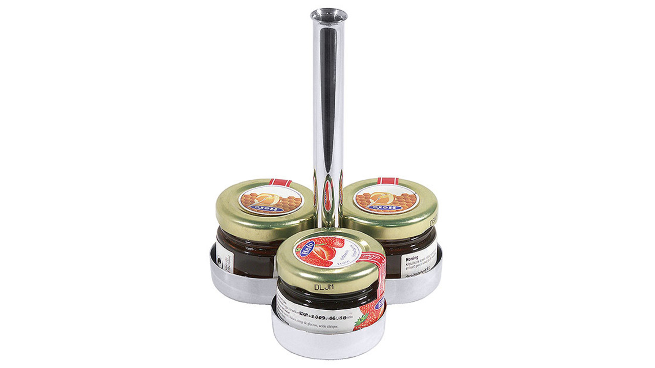 A jam stand is an important serving dish on any breakfast buffet. Different kinds of jam can be laid on the different levels of this robust stand. Diameter of the jam pot max. 4,5 cm