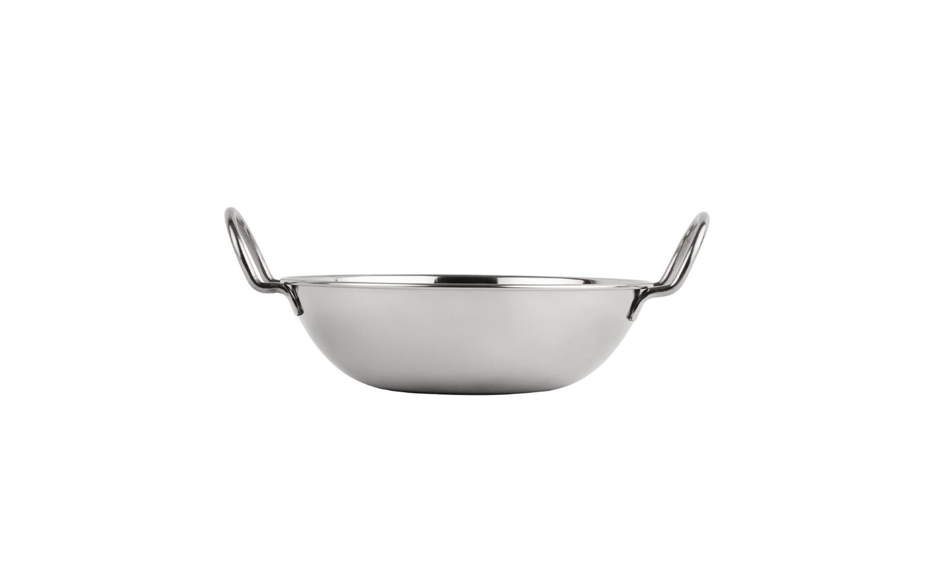 Add a new and different flavour to your menu, with this flat bottomed large balti serving dish.
