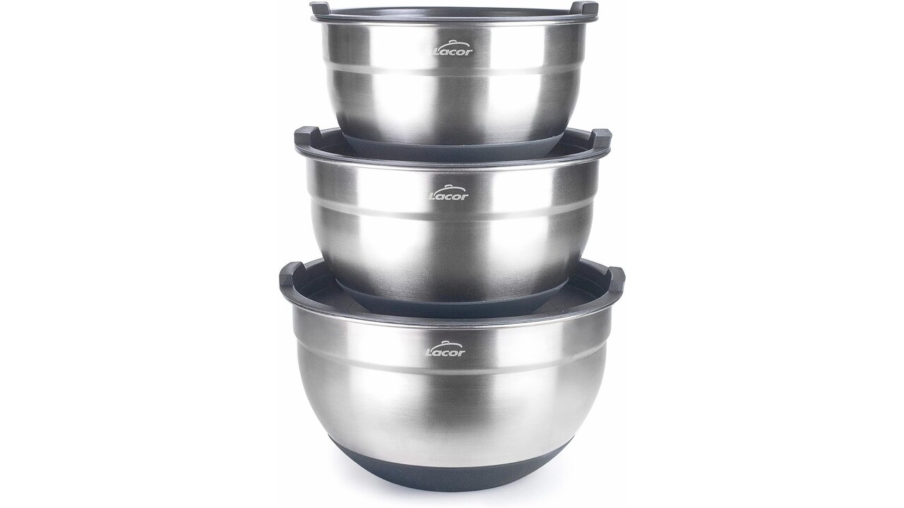 Set of 3 bowls made from the highest quality stainless steel Satin interior and exterior finish Ideal for mixing, beating, preparing pasta and serving salads or sauces