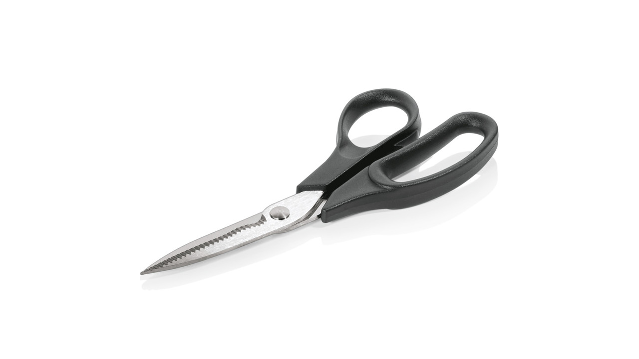Poultry scissors with plastic handle. Length: 25 cm. Very robust professional quality.