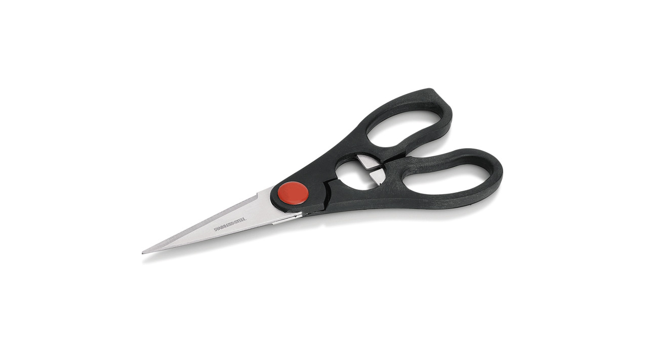 Fish scissors with serrated blade for easy work. Blade steel X50CrMoV15