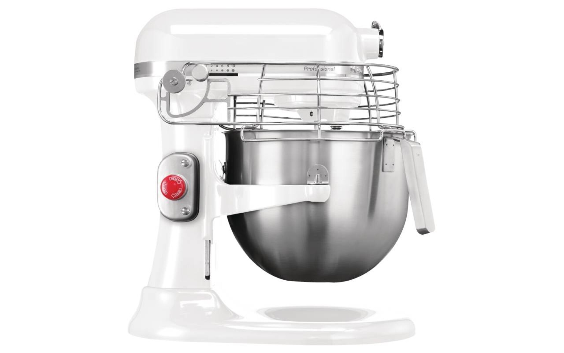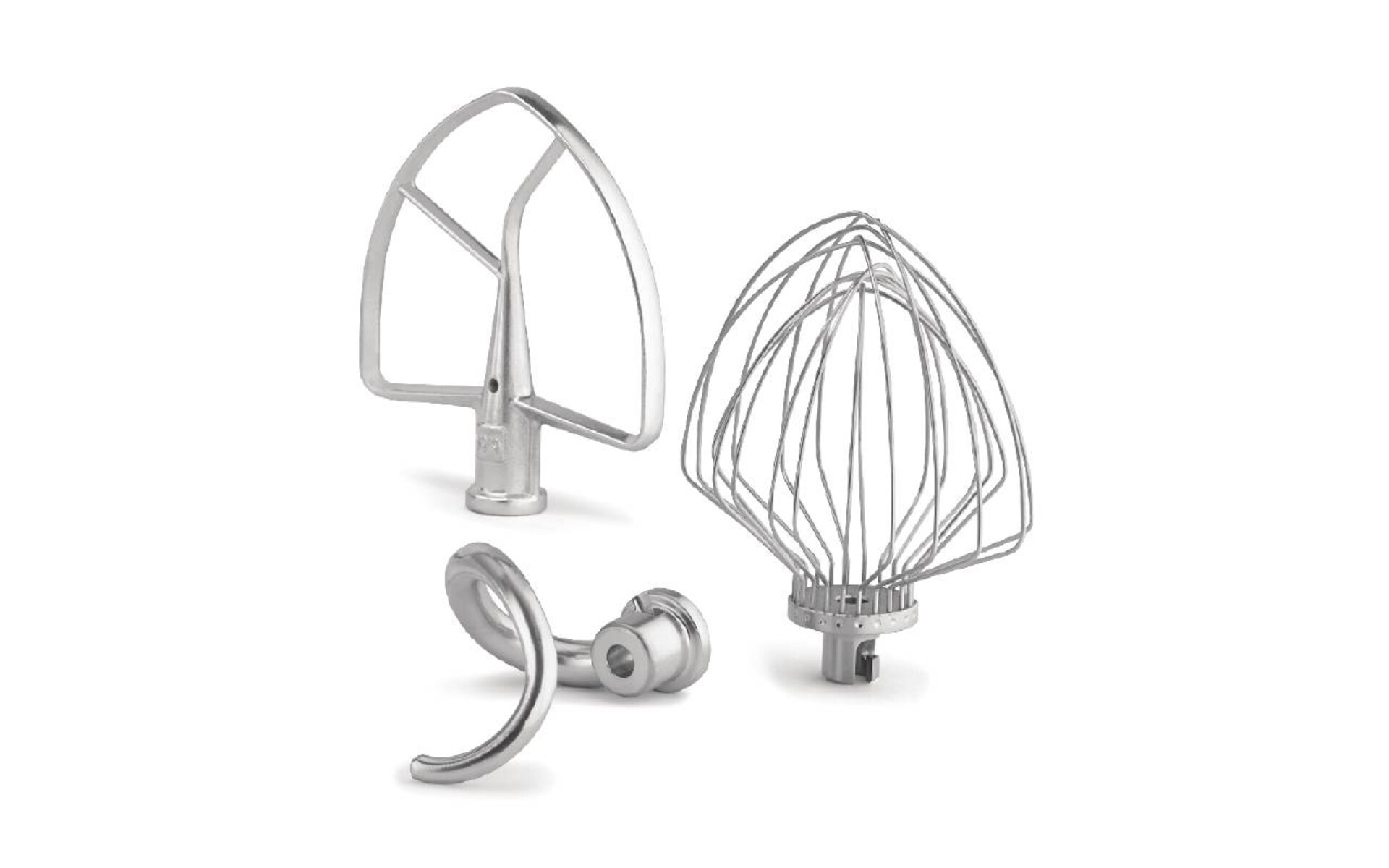 Supplied with a stainless steel wire whisk, dough hook and flat beater.