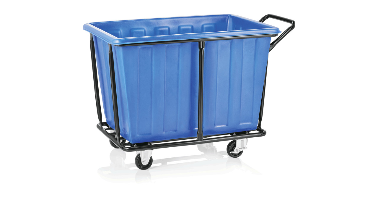 Linen trolley black powder-coated steel frame with polyethylene tub