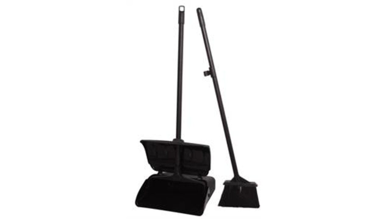 Tough polypropylene construction lobby dustpan and broom, ideal for general maintenance during busy periods or in high traffic areas where it's not feasible to sweep the whole floor such as hotel lobbies, reception areas etc. Long handle dustpan removes the need to bend down preventing obstructions and unnecessary back strain. Features wind break cover to prevent contents falling out. Broom features bracket to keep attached to the dustpan ensuring it doesn't fall over causing a trip hazard and allowing safe, tidy storage