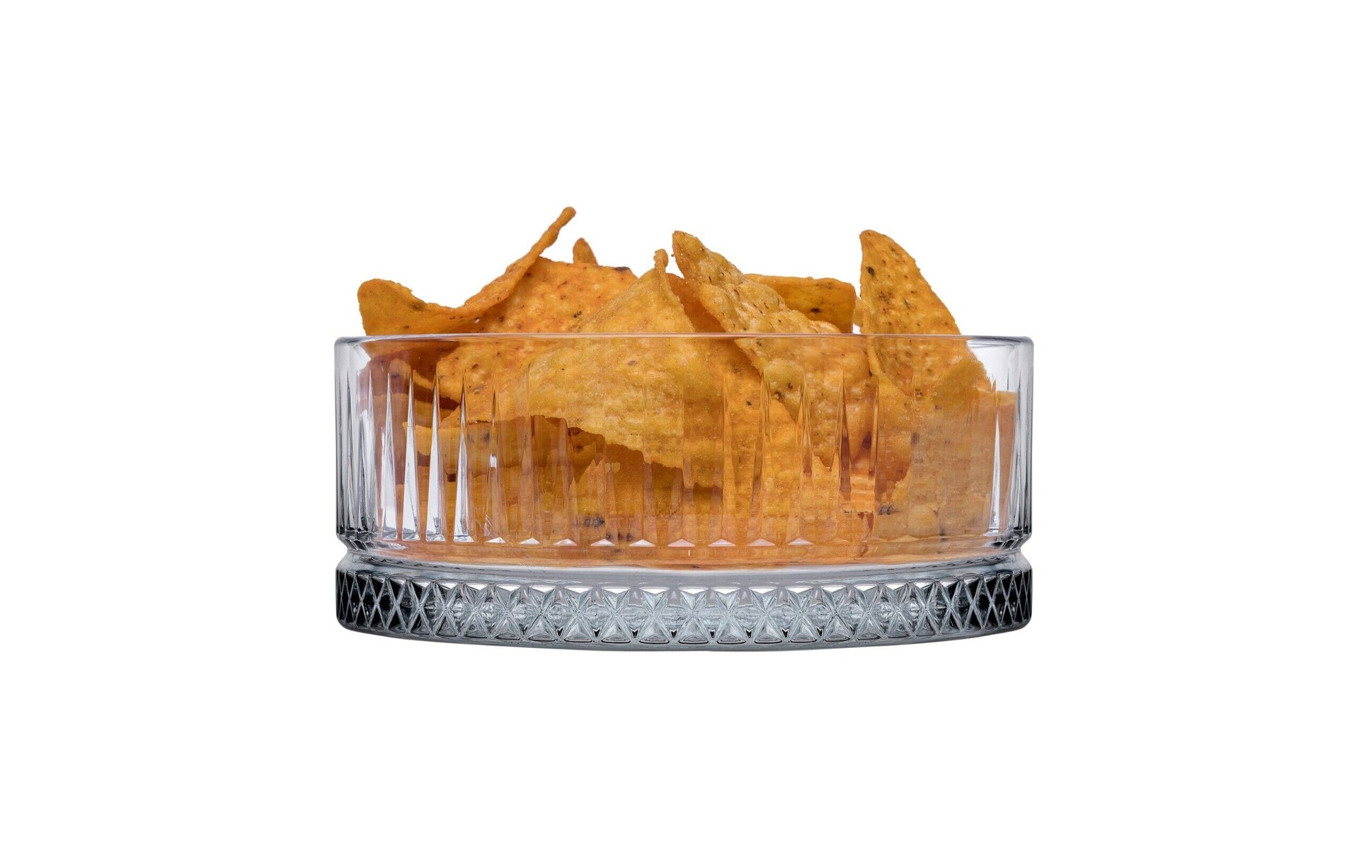 Dishwasher safe. Beautifully designed, these Vintage bowls provide a charming presentation of chips, nuts, tortillas, nachos and much more. These bowls are made from professional grade glass with a cut glass design and are ideal for use in bars, restaurants, hotels, pubs. These Elysia bowls are durable and versatile.