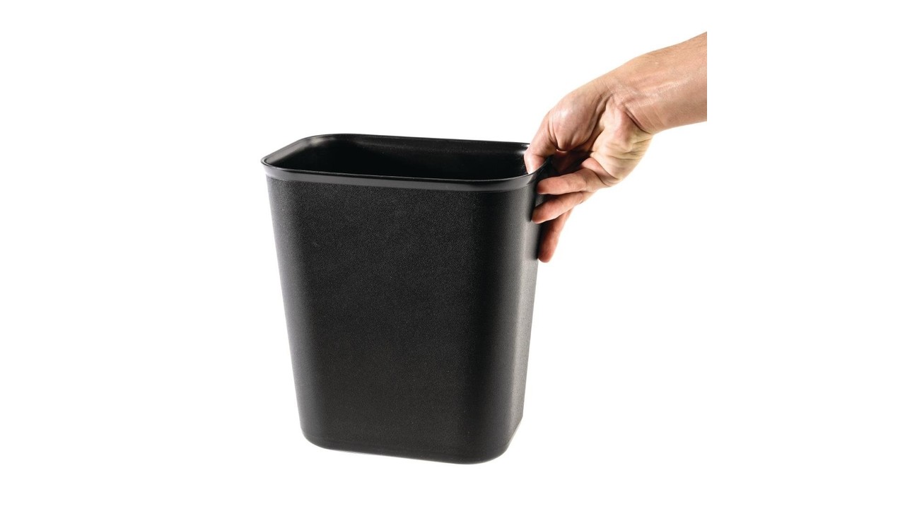 The rectangular M & T Bedroom Bin features a practical 6 litre storage capacity and can fit into tight spaces, making it ideal for smaller hotel rooms, guest rooms and bathrooms in both commercial and domestic venues. The waste bin meets fire safety standards and has a sleek, black design made from durable and reliable polypropylene that will not dent or chip.