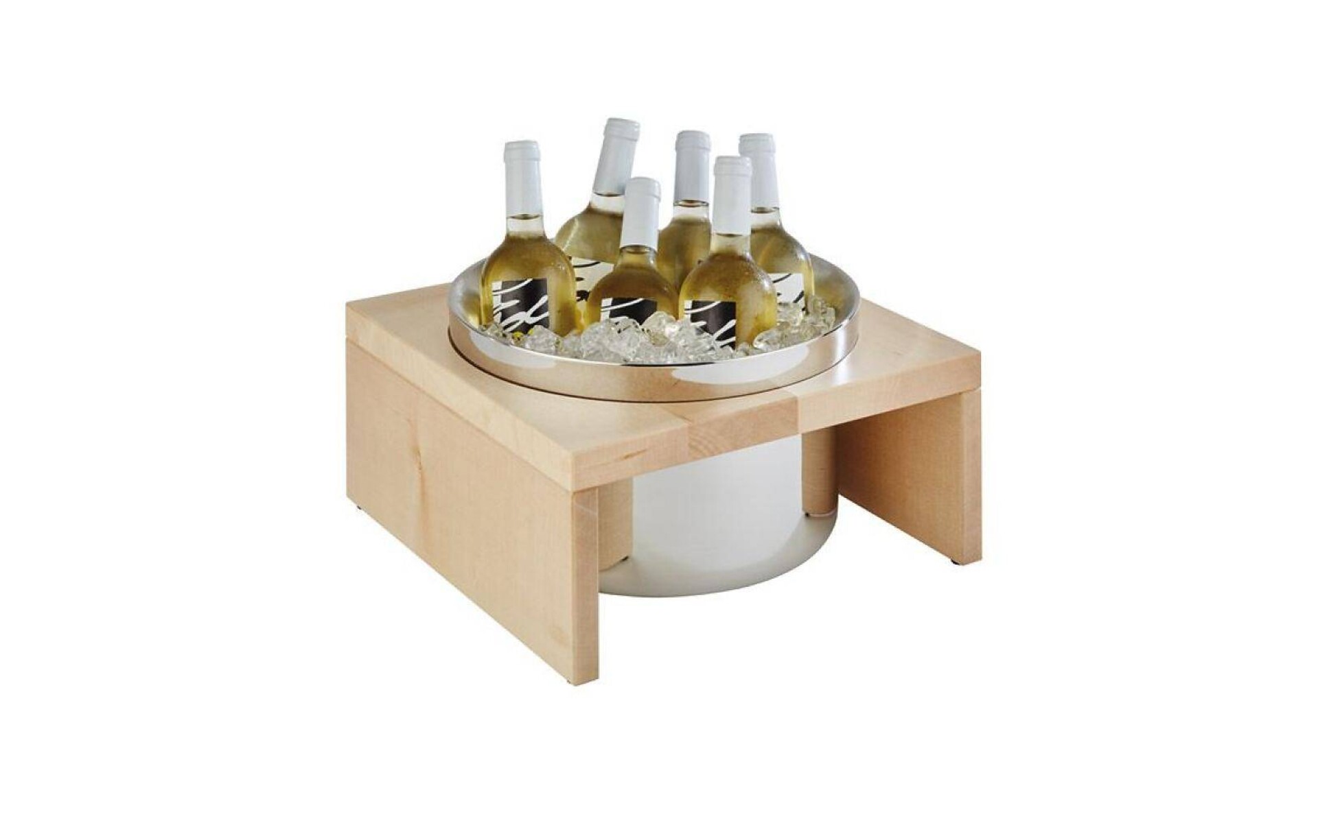 2 pcs set 1 wooden maple base and 1 double walled wine/champagne cooler 35x35 cm x 20 cm h