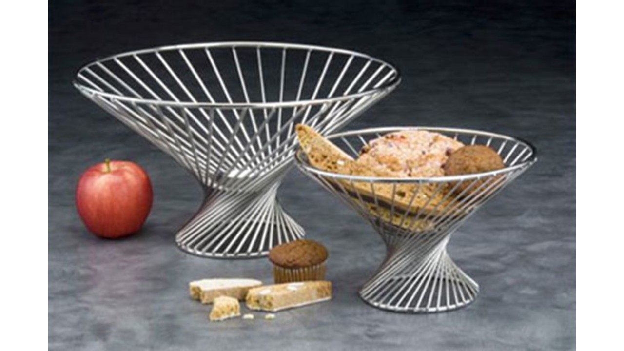 This whirly basket is perfect for displaying and serving food items. Constructed of 18/8 stainless steel wire. It can also be turned over to create a display pedestal. Its elegant design is sure to impress any guest and add class to any room.