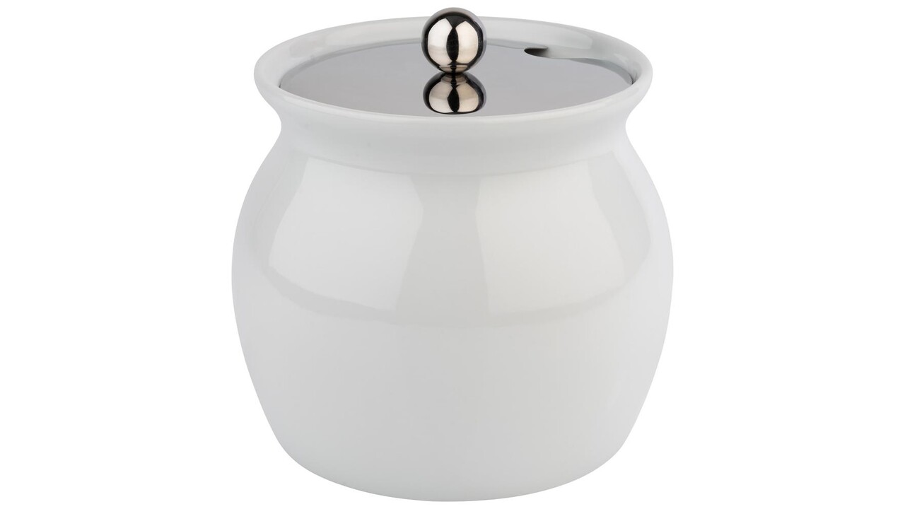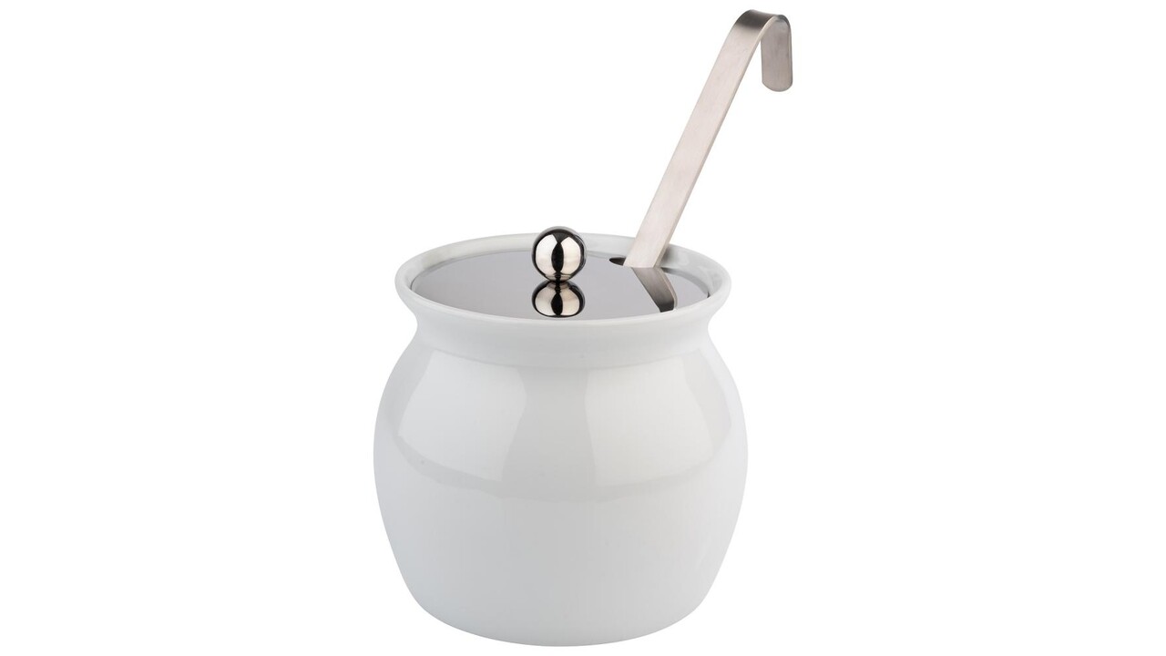 Dressing pot 2 L white porcelain, lid in stainless steel notched for spoon