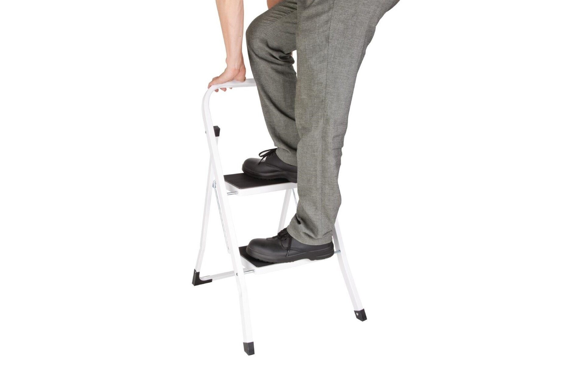 Foldable. Space between steps: 250mm. Simply fold away for easy and compact storage. Capacity Maximum load: 150kg. Dimensions 900(h) x 470(w) x 30(d)mm.