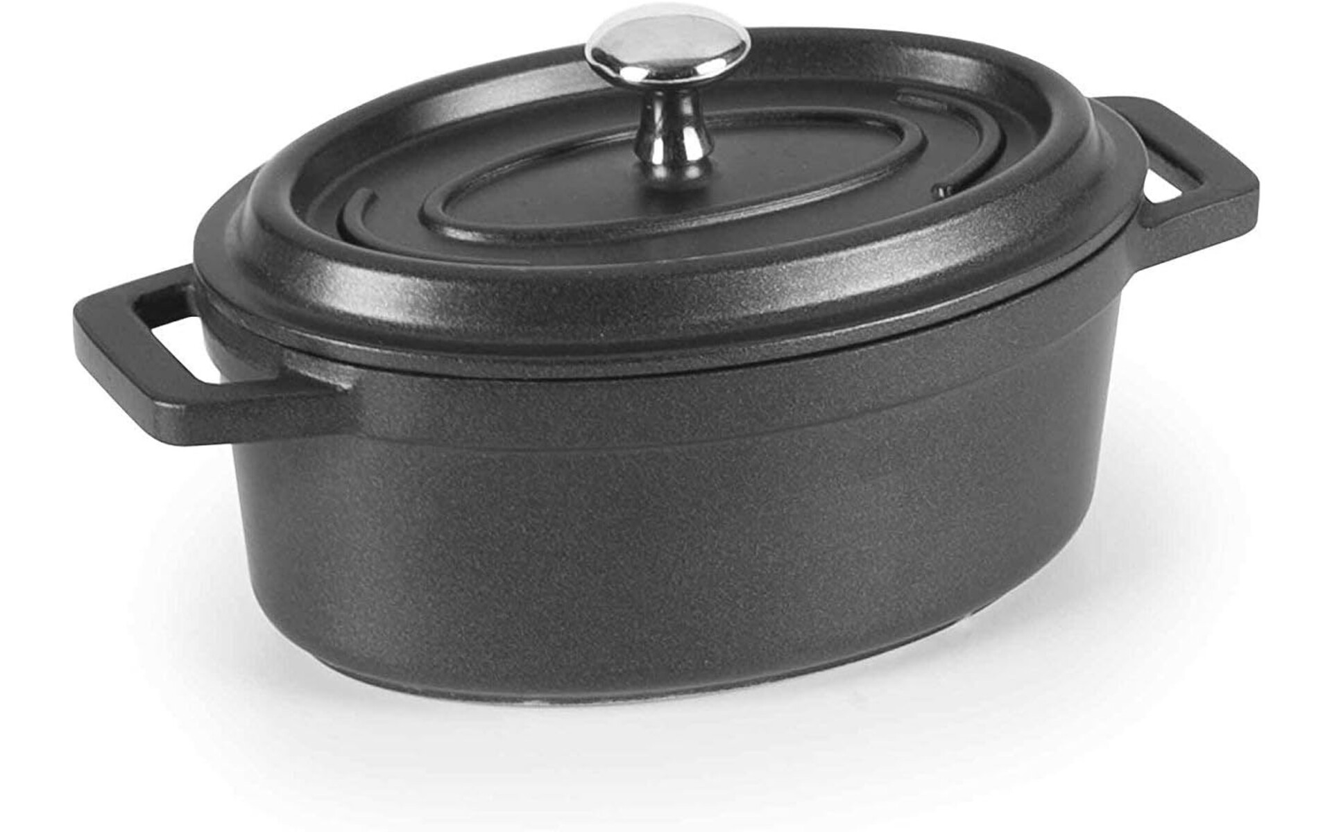 Mini oval cocotte with lid 12 x 8,5 cm black finish