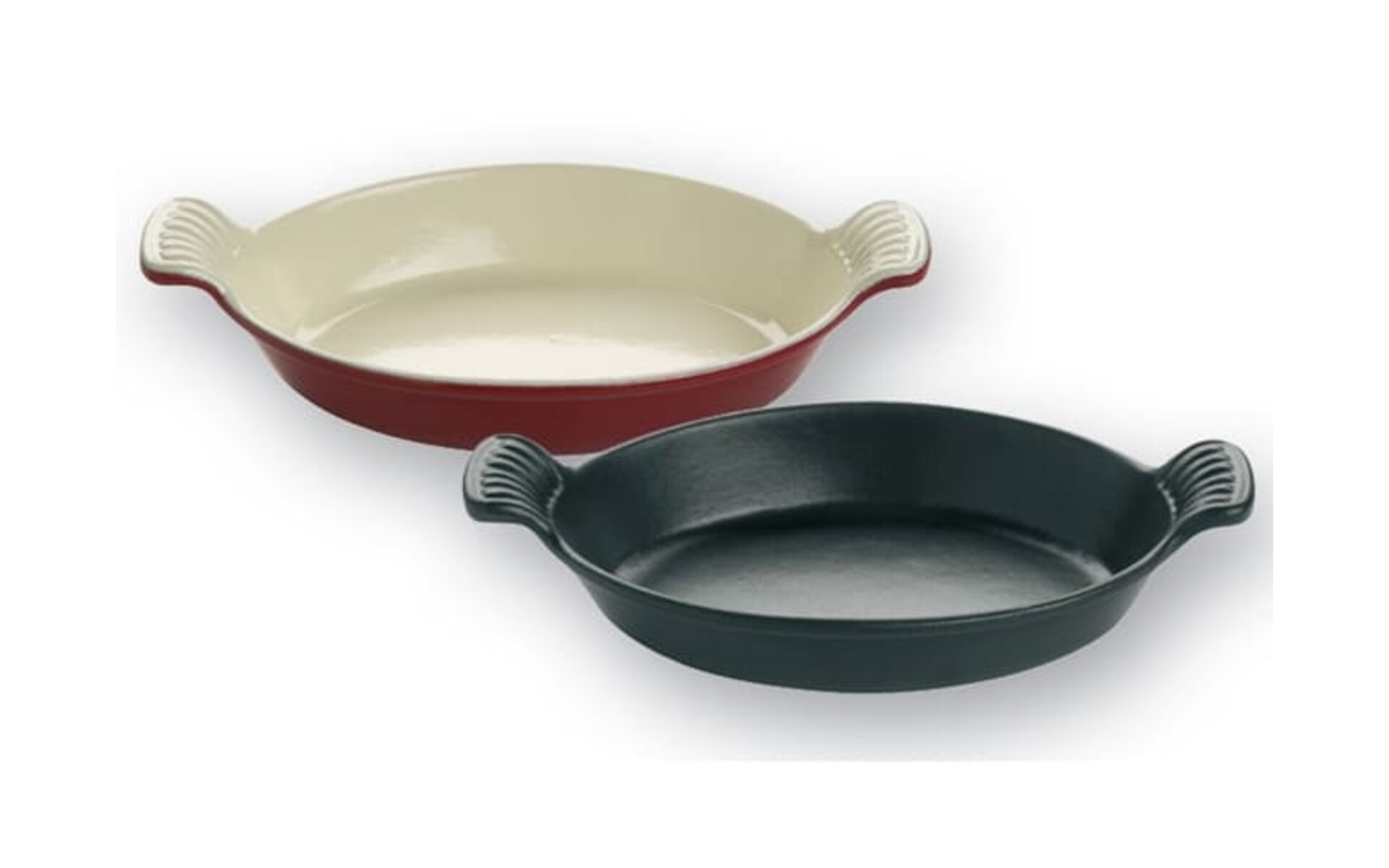 Oval dish in red enamelled cast iron " Le Chasseur" Made in France