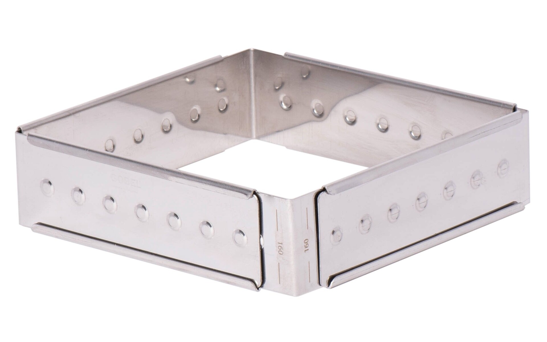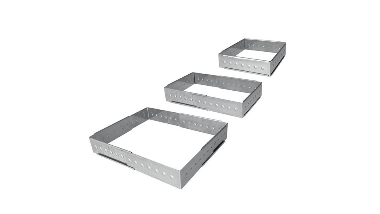 The Gobel adjustable frame is ideal for making operas, bavarois, strawberries, mousses, sponge cakes, etc. Its shape adjusts to a square or rectangle from 16 to 28 cm.