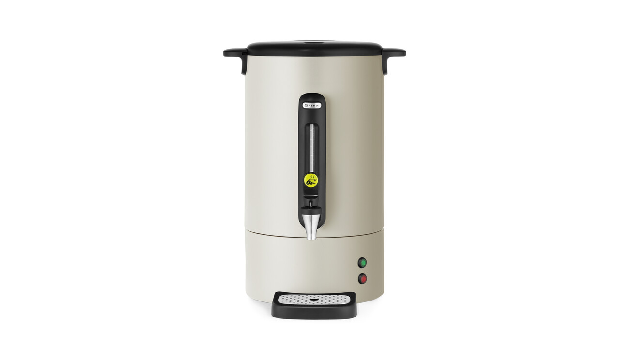 The HENDI Percolator – design by Bronwasser is the perfect combination of elegance and functionality. This stainless steel percolator features a non-drip tap, a glass water level indicator, a magnetic drip tray, and automatic keep-warm mode, making it an essential addition to any modern buffet.