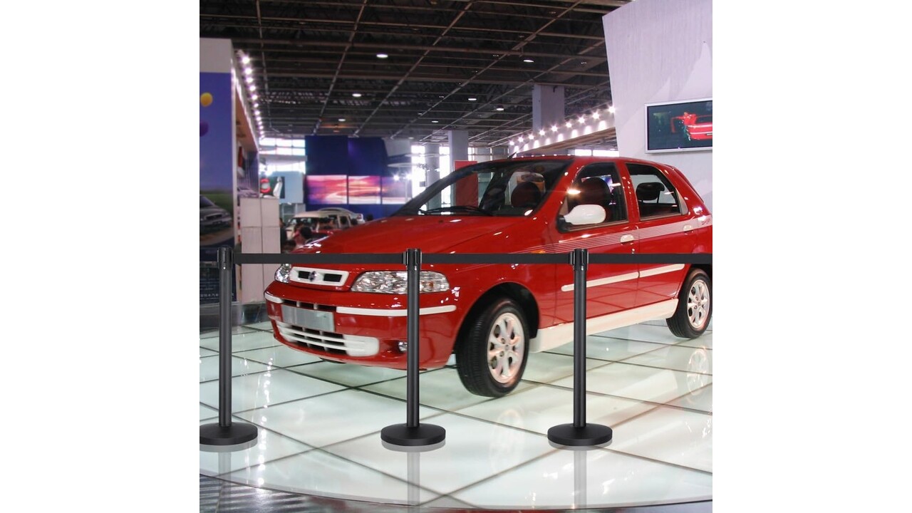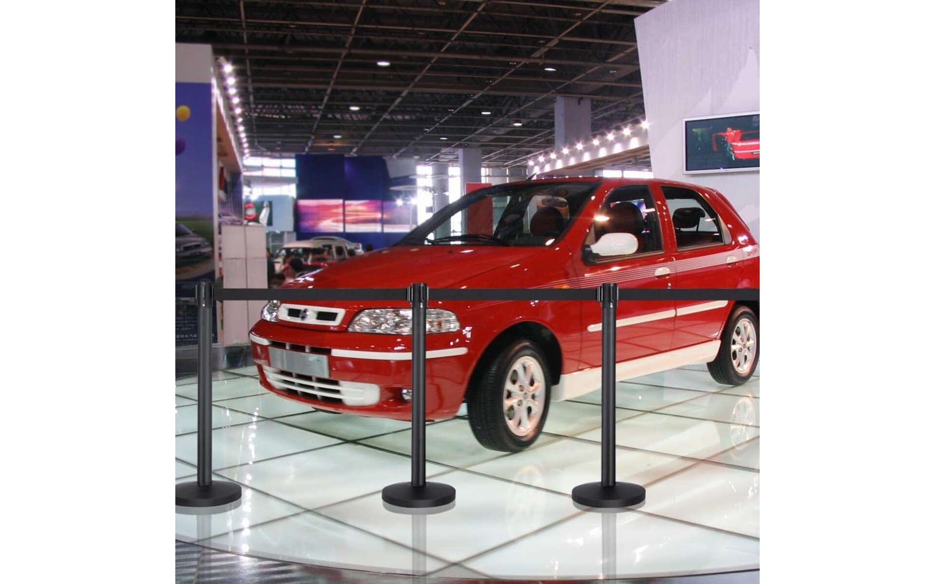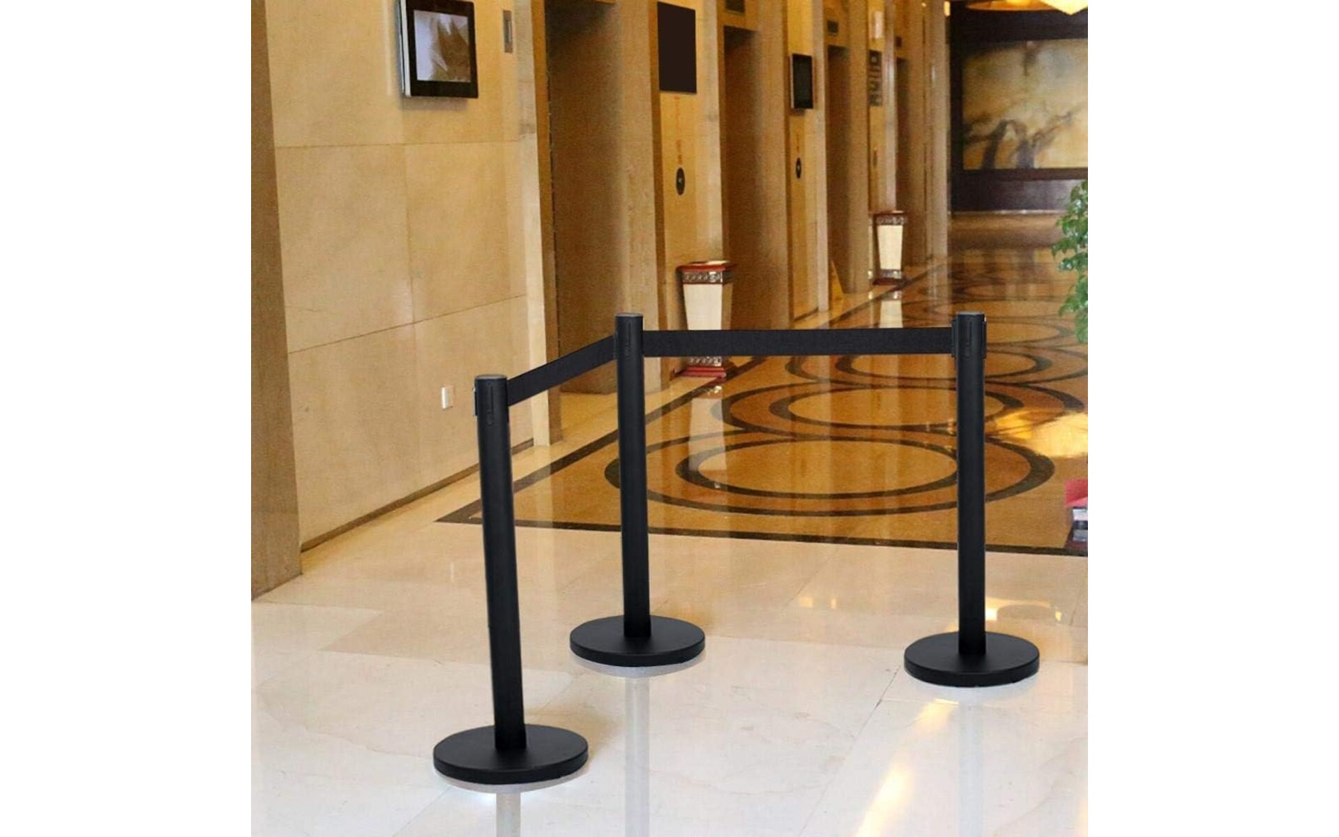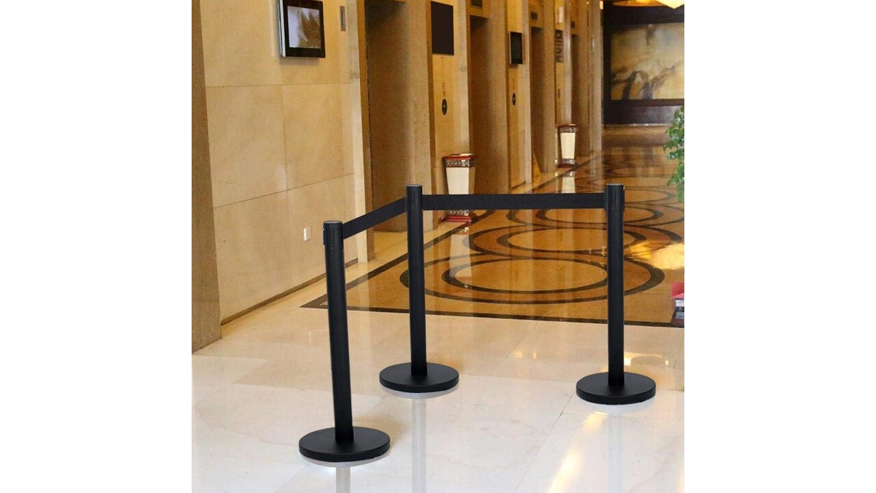 Barrier poles: practical, black powdered metal. Quick to install, easy to use, and hassle-free connections.