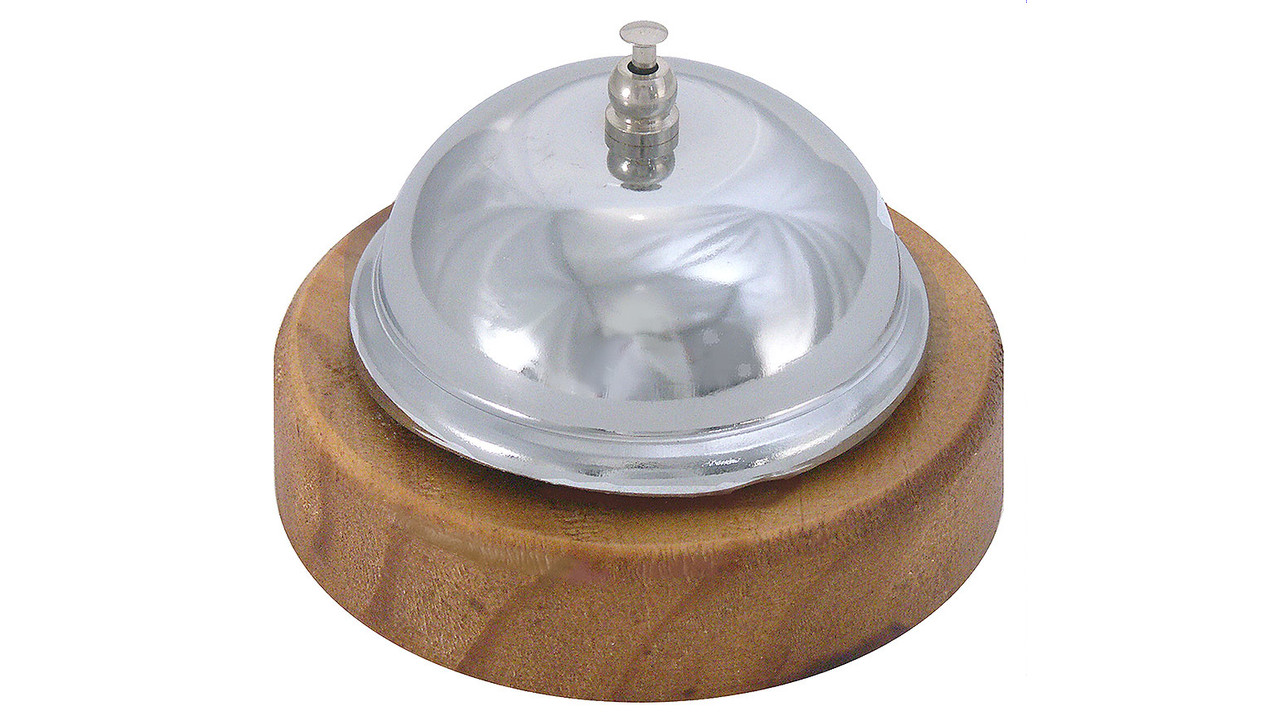 Reception bell chrome on wooden base - M&T