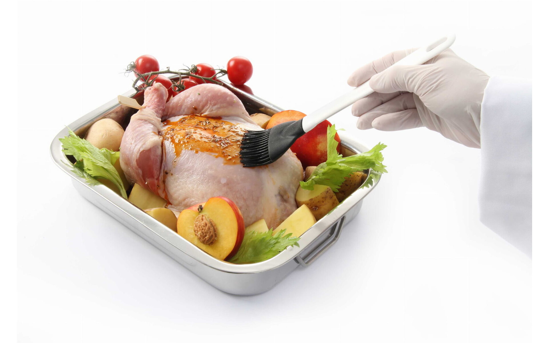 Made from stainless steel for intensive use. Suitable for use in the oven. DO NOT place directly on a heating source. Not suitable for induction.
