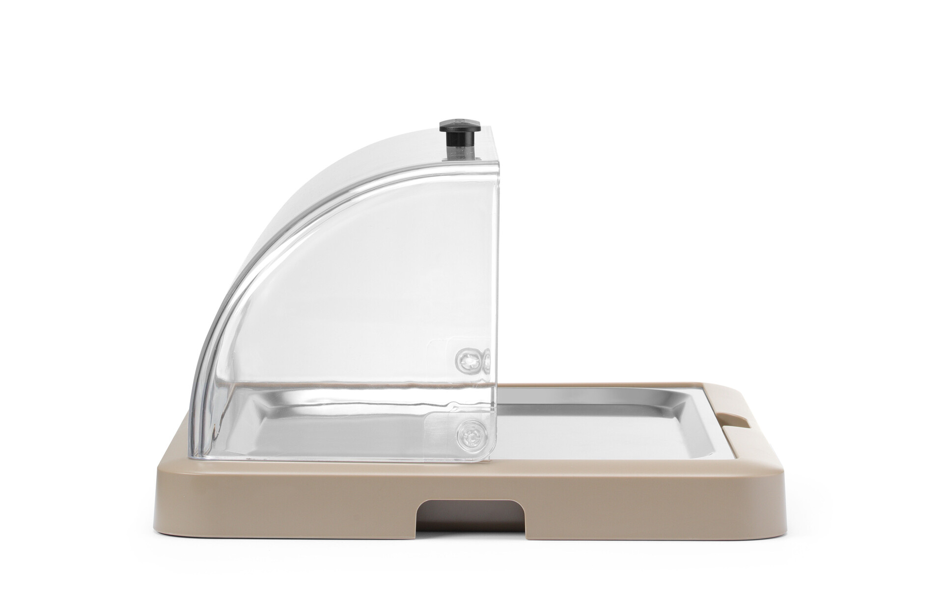 Roll-top lid opens up to 90 degrees - easy refilling of 40x30 cm trays with food.