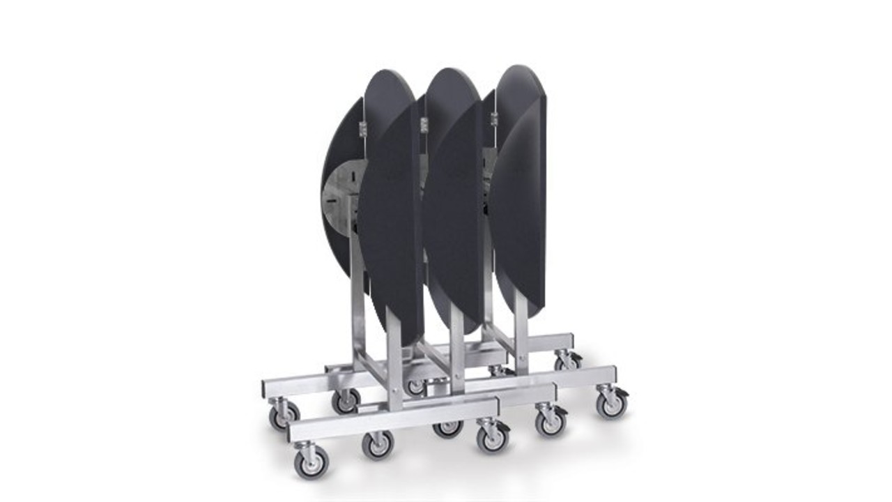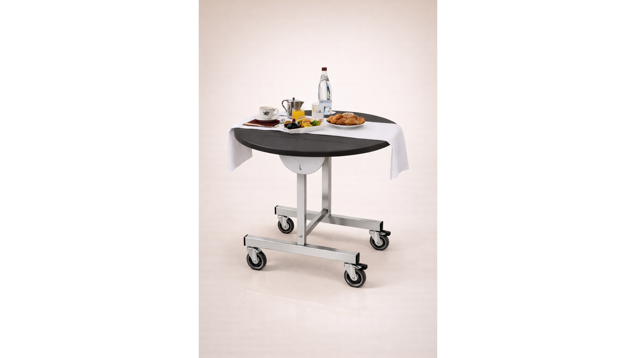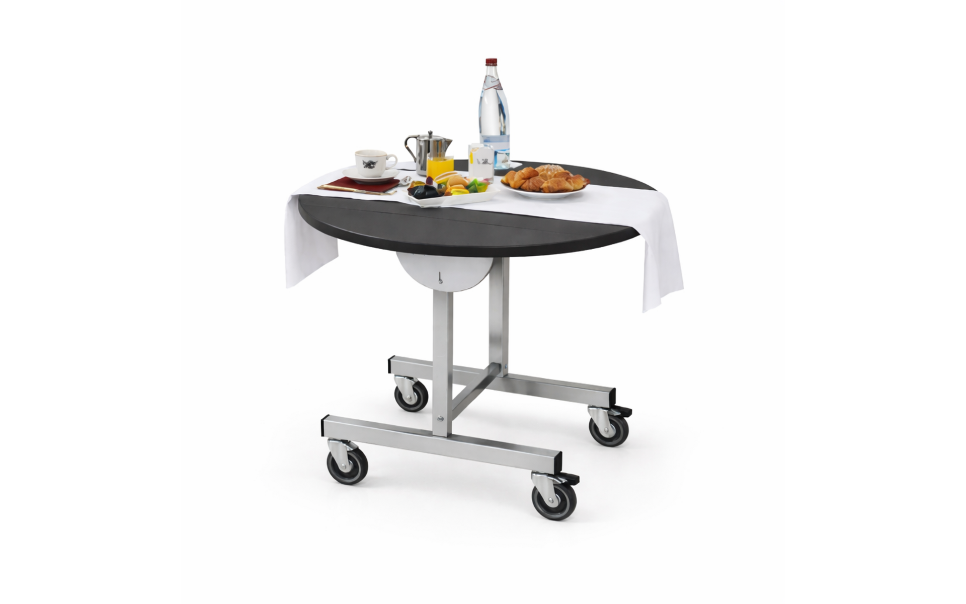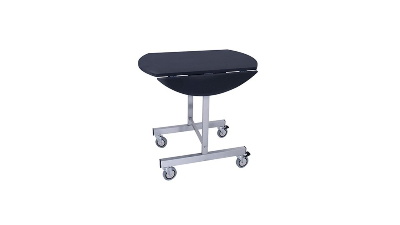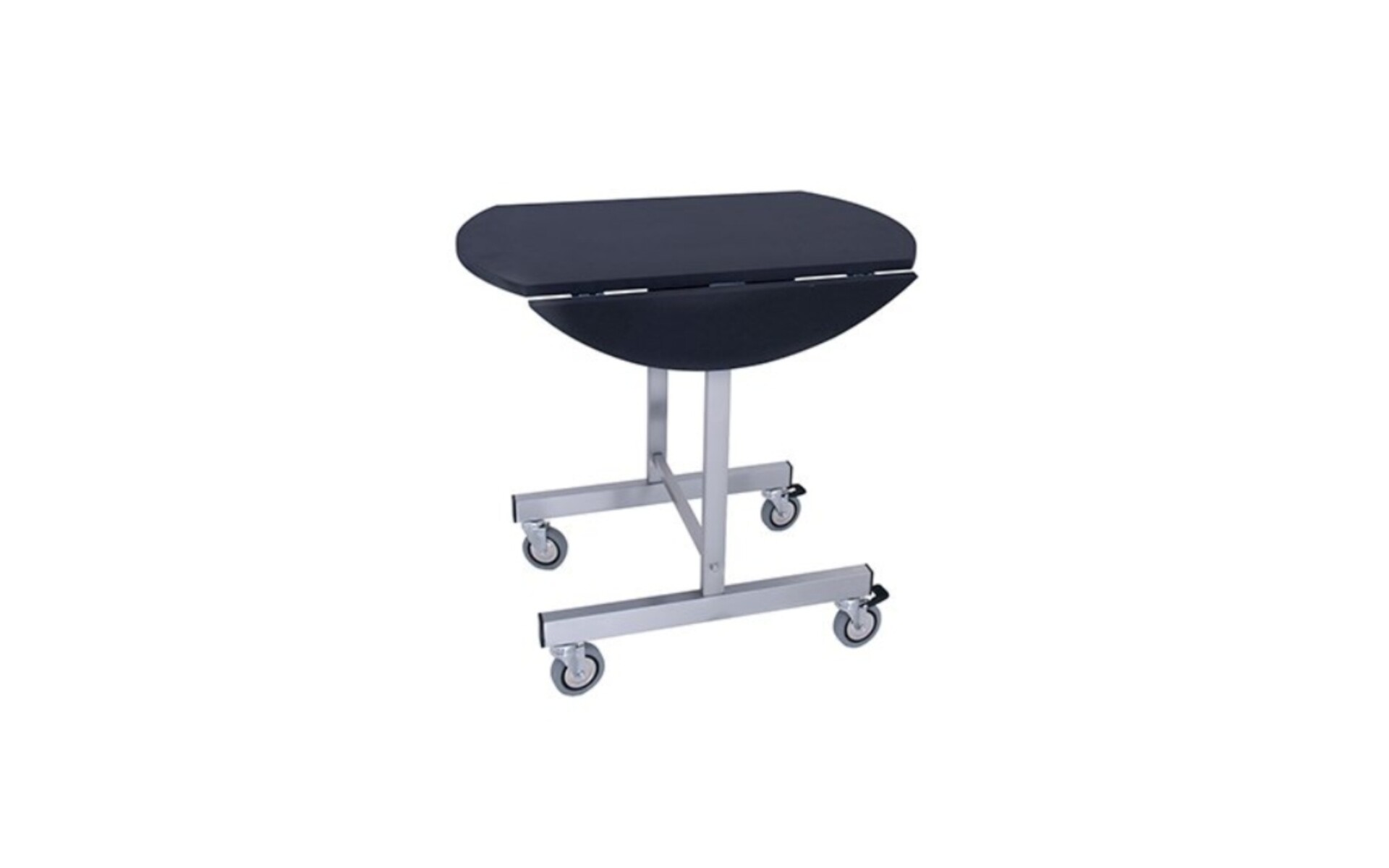 Round melamine-faced top with all round rubber bumper and folding leaves, Cherry wood colour