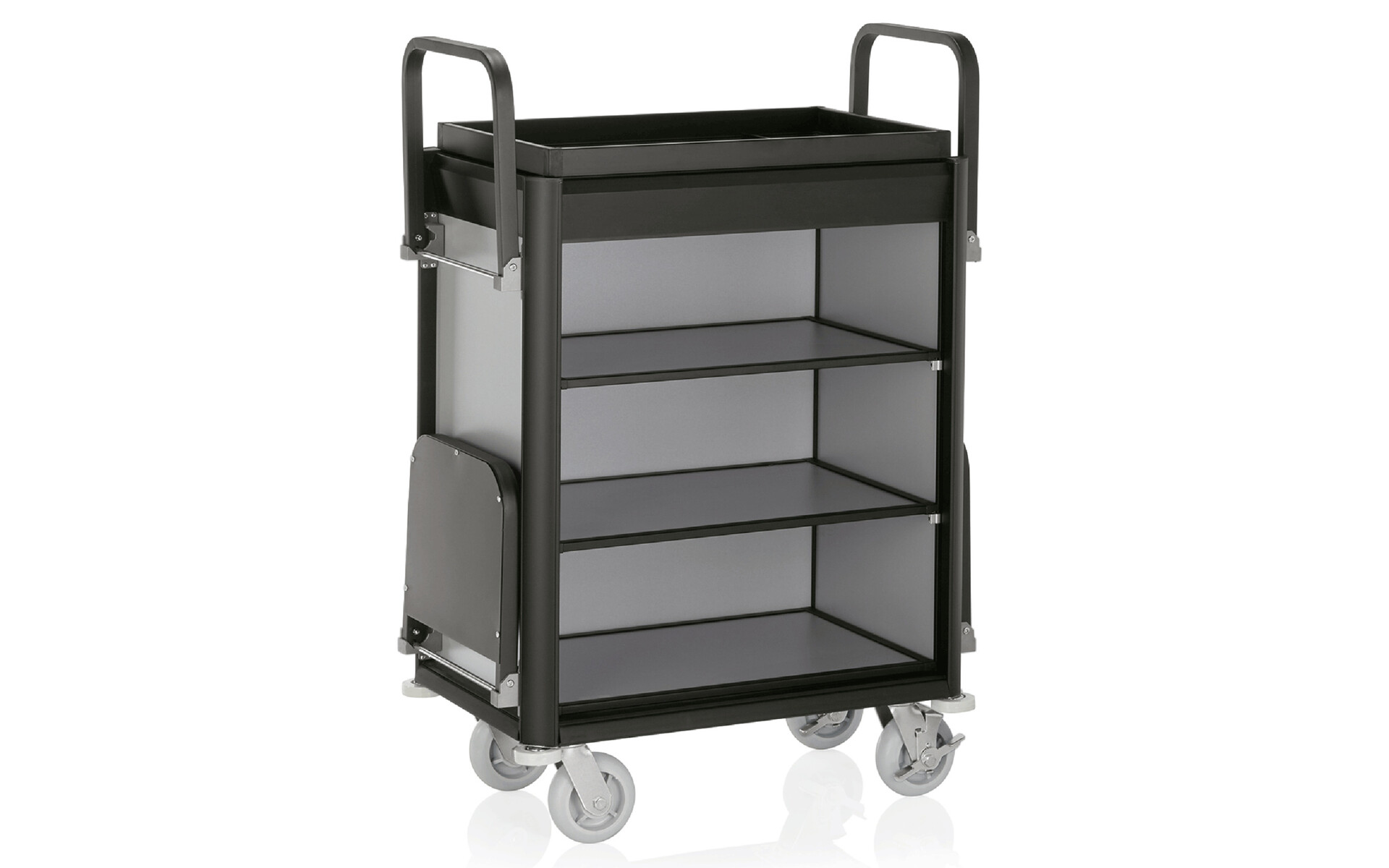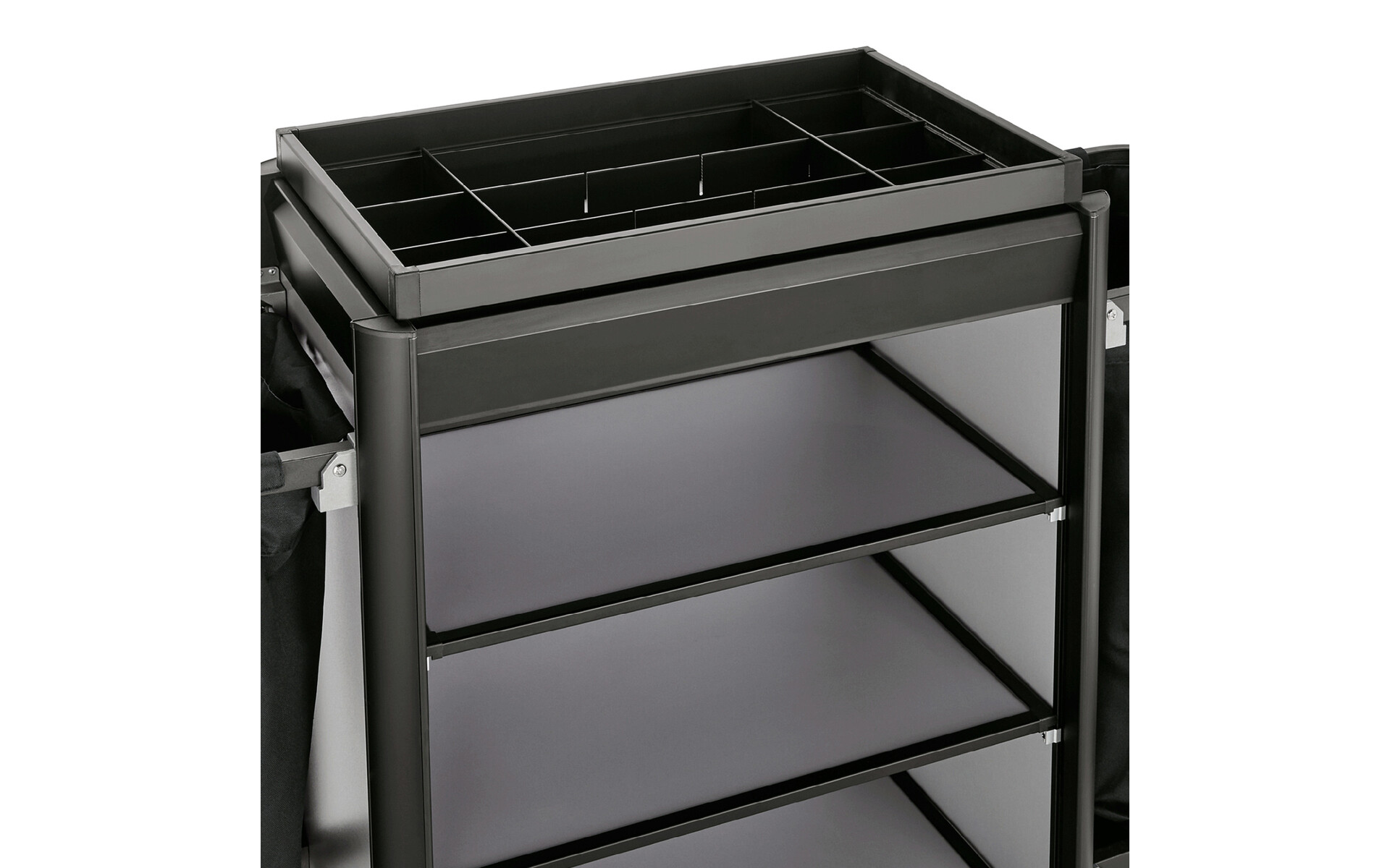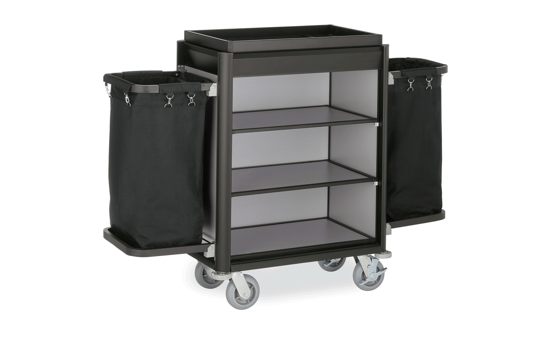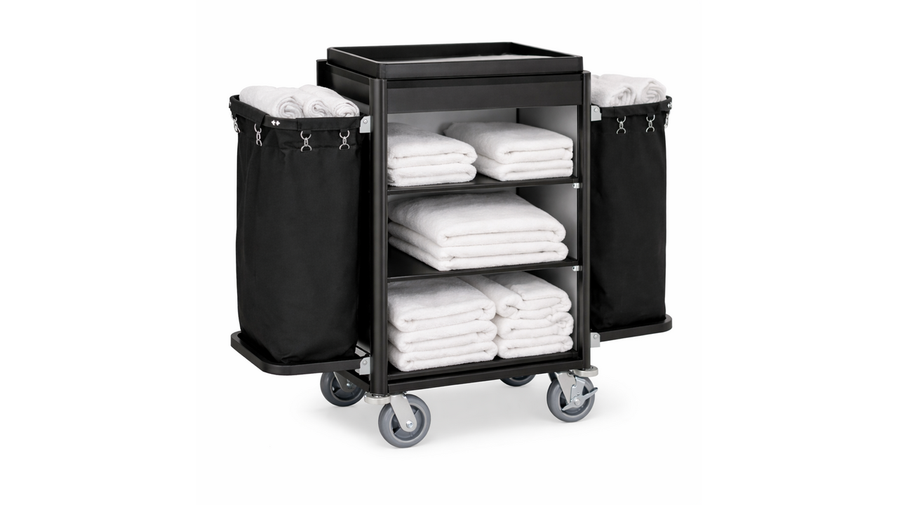 Roommaid - housekeeping trolley black aluminium frame with MDF aluminium look