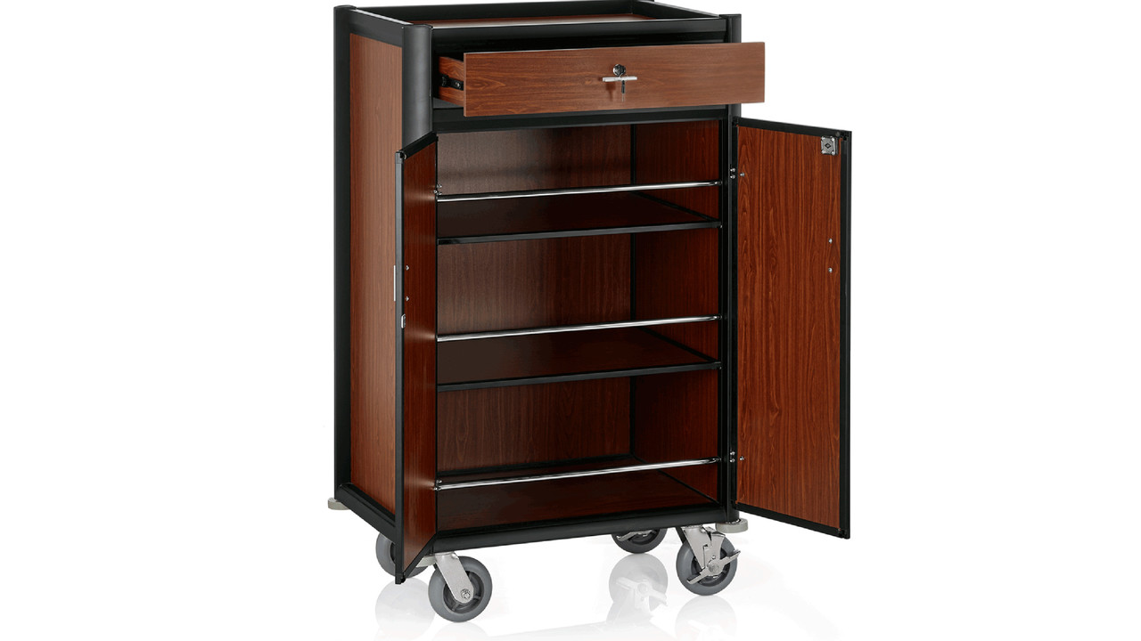 Minibar refill trolley black aluminium frame with MDF darkwood look