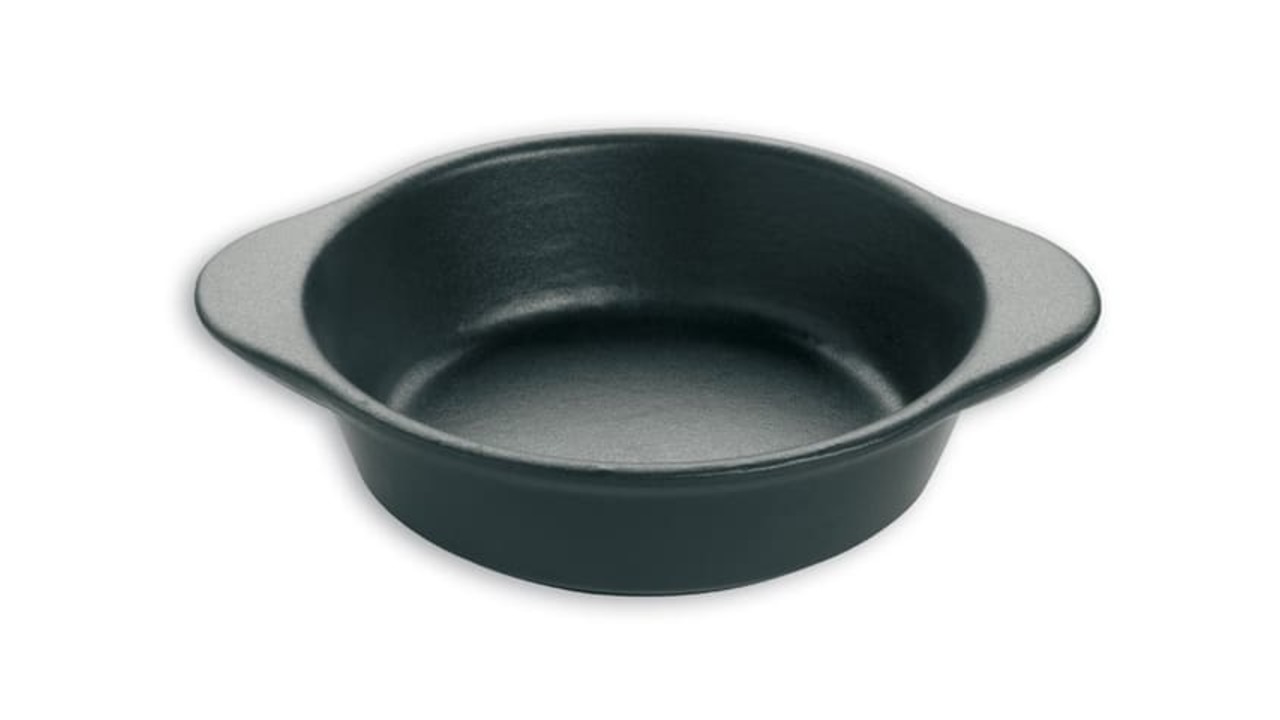 Round deep dish in black enamelled cast iron " Le Chasseur" Made in France
