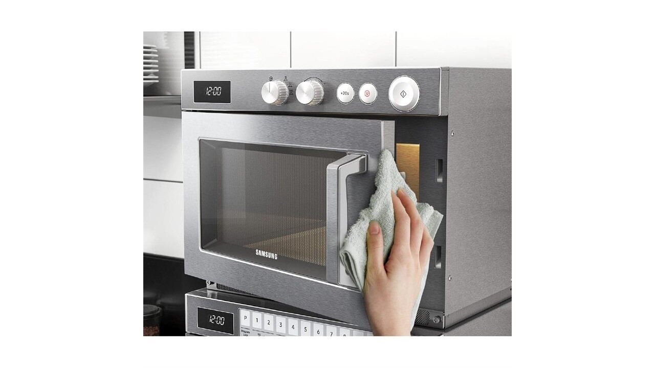 For further flexibility, the Samsung is big enough to fit microwave-safe 2/3GN size containers, so there's plenty of performance to microwave large quantities all at the same time. Whether it's installed in a café, restaurant or canteen, the Samsung microwave is a great choice for the professional.
