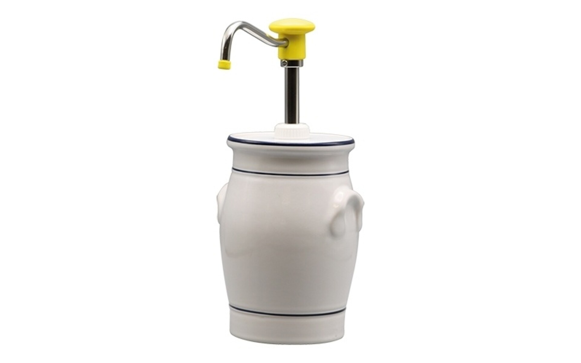 Ceramic pot complete with red push-button dispenser, fixed dosage of 30 ml, text plate ''mustard '' is supplied separately.