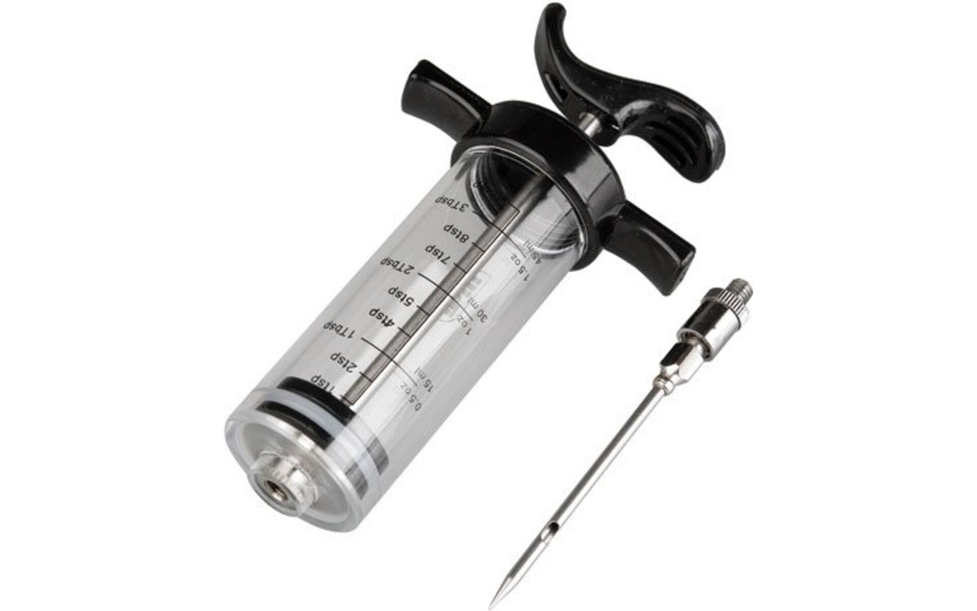 Essential for injecting flavoured jus into roasts, fish, poultry, and shellfish to spice up the taste and keep the meat moist during cooking, 75 mm stainless steel needle with a double opening for improved liquid distribution.