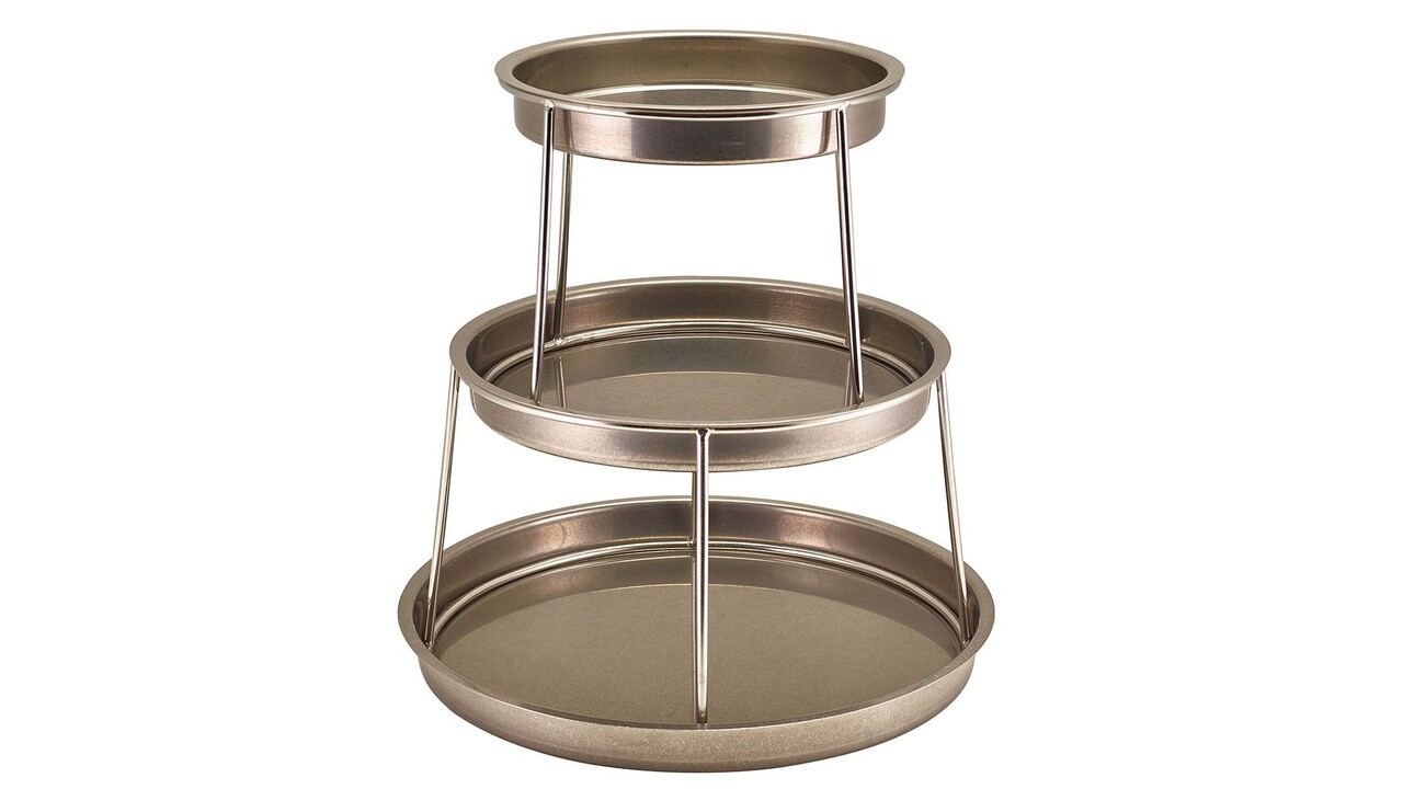 - Three-tier design saves space on the table