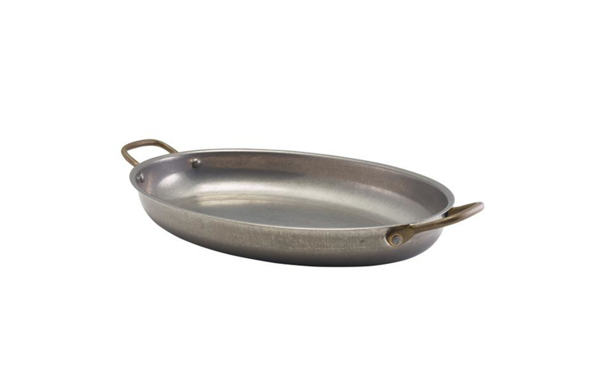 The Vintage Steel collection creates an industrial look to food presentation perfectly suited to a wide range of popular cuisines. The range is made from stainless steel with an industrial vintage finish safe for direct food contact. The oval serving dishes feature attractive brass handles well suited to upscale casual dining and combines beautifully with white or reactive glazed ceramic for presenting premium sides, starters or desserts.