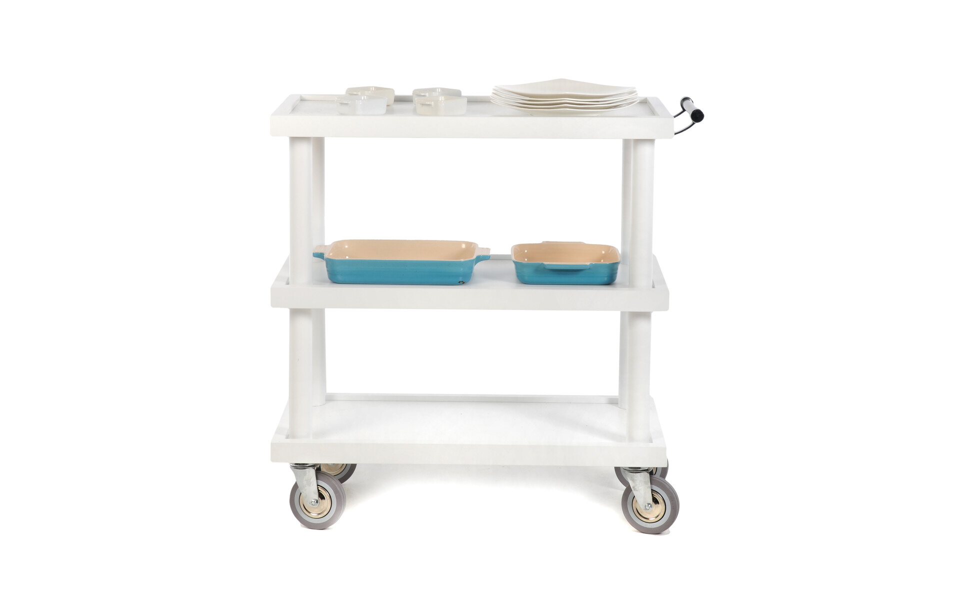 Very versatile – can be used as a clearing trolley, service trolley, tea trolley